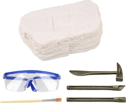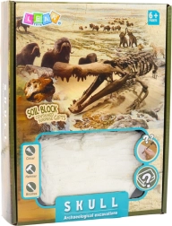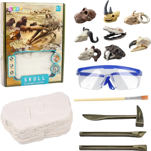 Tato archeologická sada dětem umožní zažít skutečné „vykopávky“. Uvnitř odolného sádrového bloku je schovaná tajemná lebka – může patřit různým prehistorickým tvorům, a proto je každý objev jedinečný. Díky dłutům/chiselům, kladívku a štětci si děti vyzkouší, jak opatrně odkrývat nález, čistit jej a zkoumat detaily.