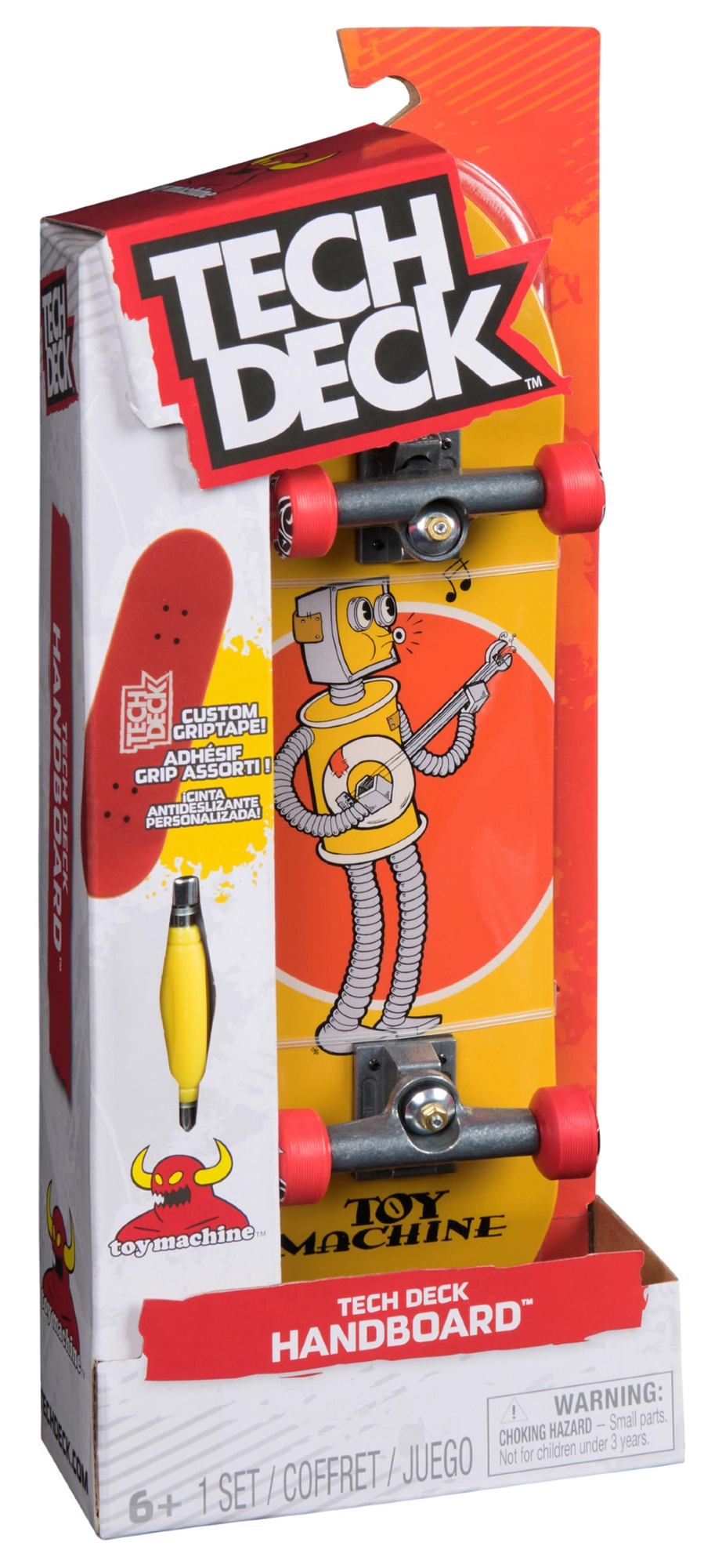 Handboard TECH DECK Toy Machine maxi 27 cm přináší realistický skateboardový zážitek v XXL provedení pro vaše ruce. Větší rozměr usnadňuje ovládání, učení a provádění triků prsty, zároveň skvěle rozvíjí jemnou motoriku a koordinaci. Legendární série TECH DECK je tu už více než 20 let a stále si získává nové fanoušky díky autentickému vzhledu a vysoké kvalitě.