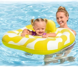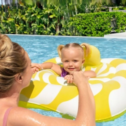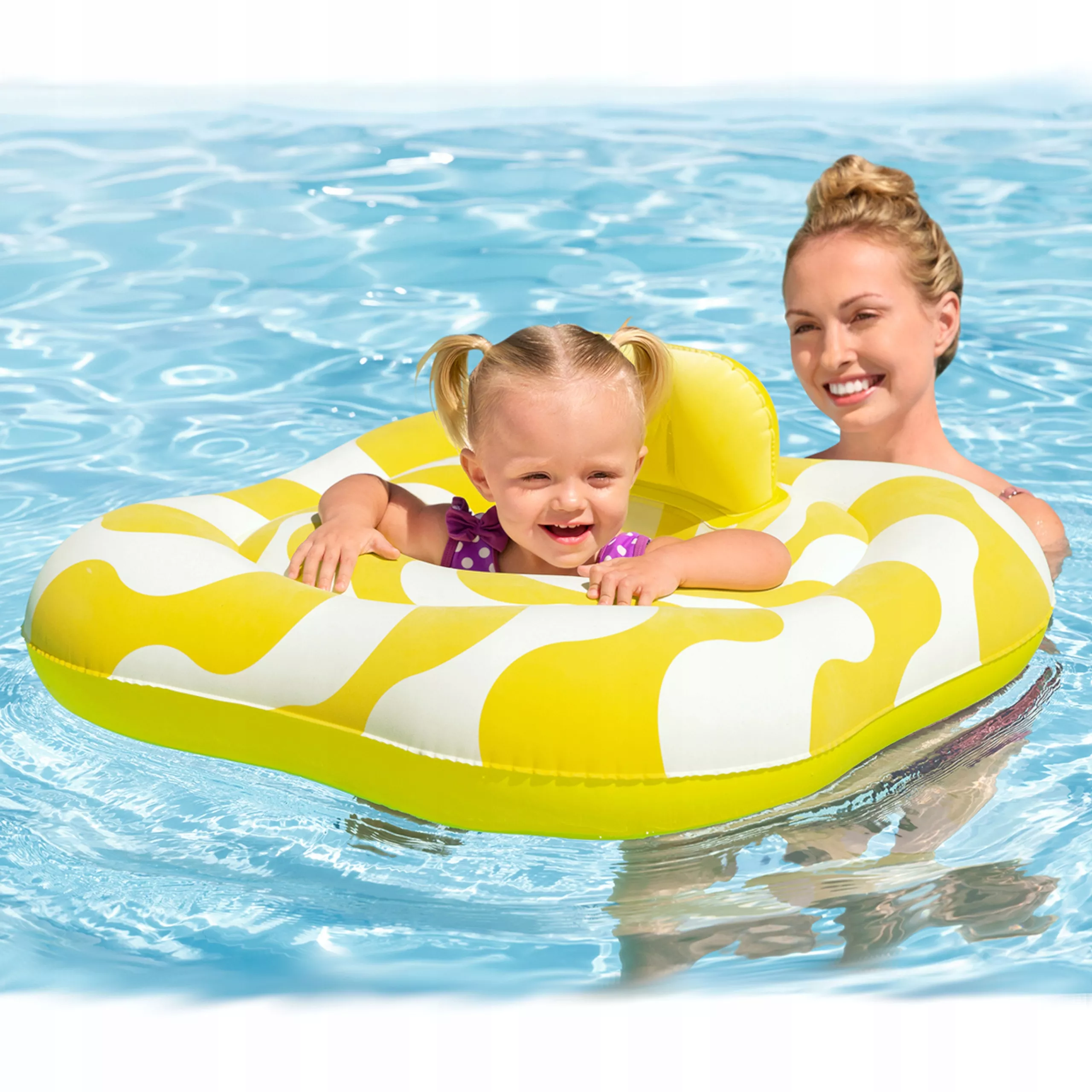 Nafukovací dětské sedátko do vody se čtvercovým tvarem pro výbornou stabilitu a vztlak, integrovaným sedákem s otvory na nožičky a nafukovací opěrkou zad. Lehké, skladné a snadno se nafukuje – ideální pro první bezpečné hry ve vodě pod dohledem dospělých.