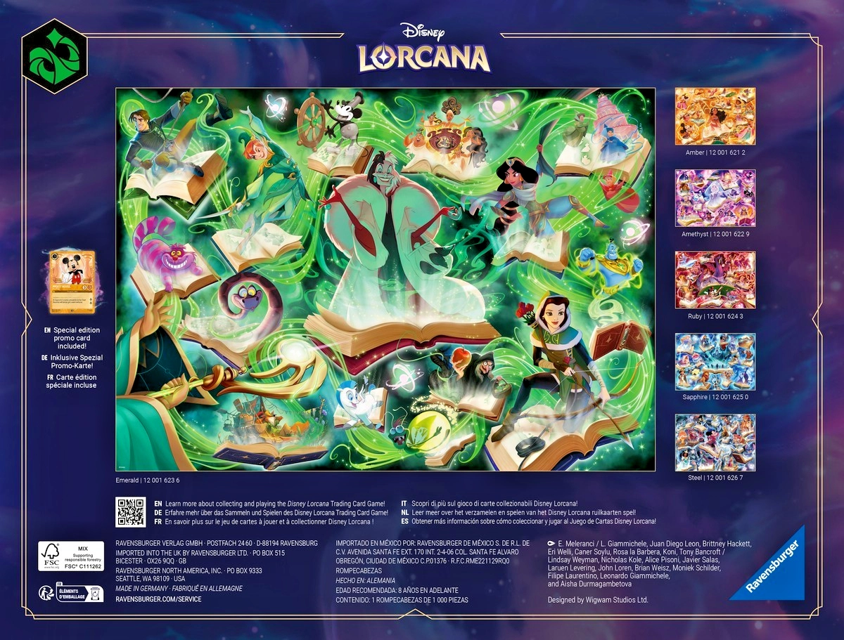 Objevte detailní ilustraci ze světa DISNEY LORCANA v edici Glimmers of the Realm: Smaragd. Puzzle RAVENSBURGER se pyšní špičkovou kvalitou tisku a přesností výseku, díky čemuž dílky do sebe perfektně zapadají a skládačka drží tvar. Výsledný obraz o rozměru přibližně 70 × 50 cm se skvěle hodí k zarámování.