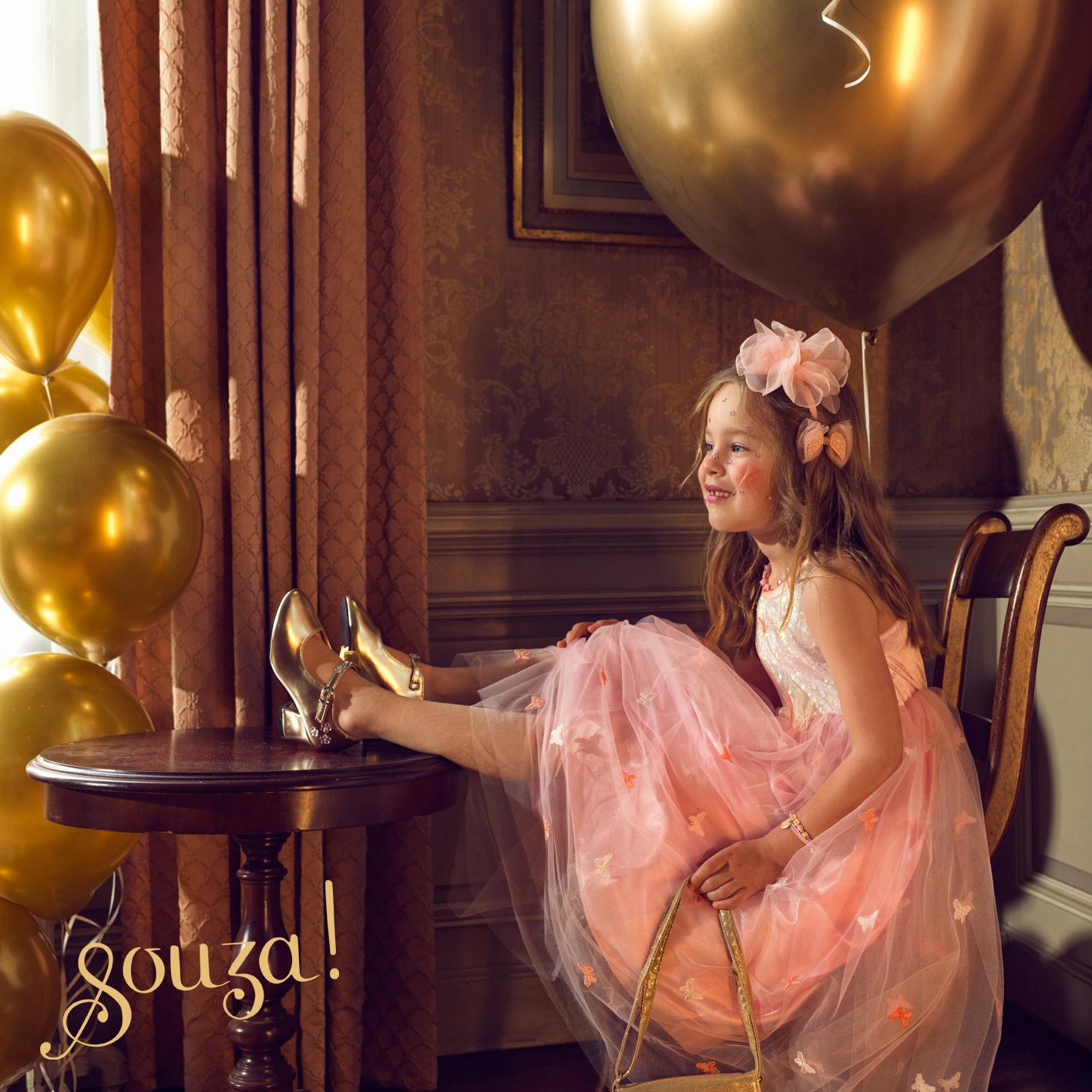 Princeznovské šaty Elise od značky Souza vykouzlí úsměv při každé příležitosti. Lehký a příjemný materiál zaručuje komfort po celý den, zatímco tylová sukně s jemnými motýly dodává šatům kouzelný nádech.