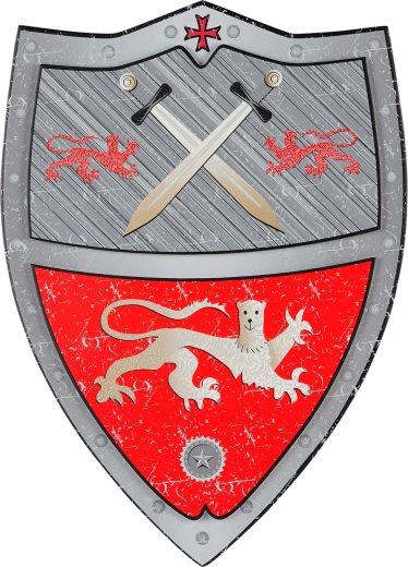 Vydejte se na rytířské dobrodružství se štítem Souza! Tristan. Tento dětský štít je vyroben z lehké a pružné EVA pěny, takže je bezpečný pro hru a zároveň dostatečně odolný pro každodenní používání. Přední stranu zdobí výrazný erb na červeném podkladu se dvěma zkříženými meči, který skvěle podtrhne každý kostým malého hrdiny.