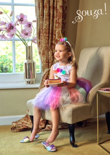 Okouzlující čelenka SOUZA! promění každou malou i větší slečnu v půvabného jednorožce. Bílý potah, nadýchané tylové květiny a zlatý roh dodají účesu pohádkový vzhled, který vynikne na narozeninové oslavě, karnevalu i při každodenní hře.