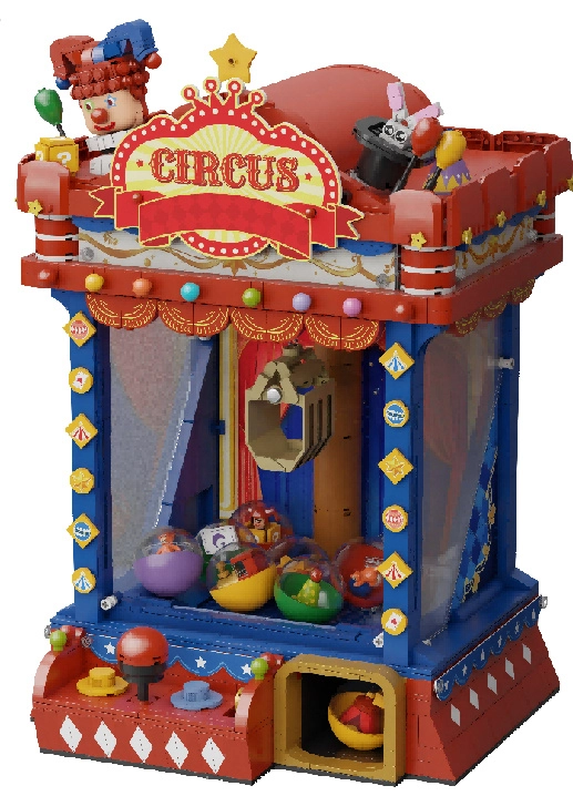 Model inspirovaný atmosférou starých cirkusů a herních sálů osmdesátých a devadesátých let vyniká vintage vzhledem a promyšlenými detaily. Po sestavení opravdu funguje jako automat – pomocí joysticku posouváte chapadlo, spouštíte jej a zkoušíte ulovit barevné kapsle s překvapením. Integrované LED světla a zvukový modul umocňují autentický zážitek z hry.