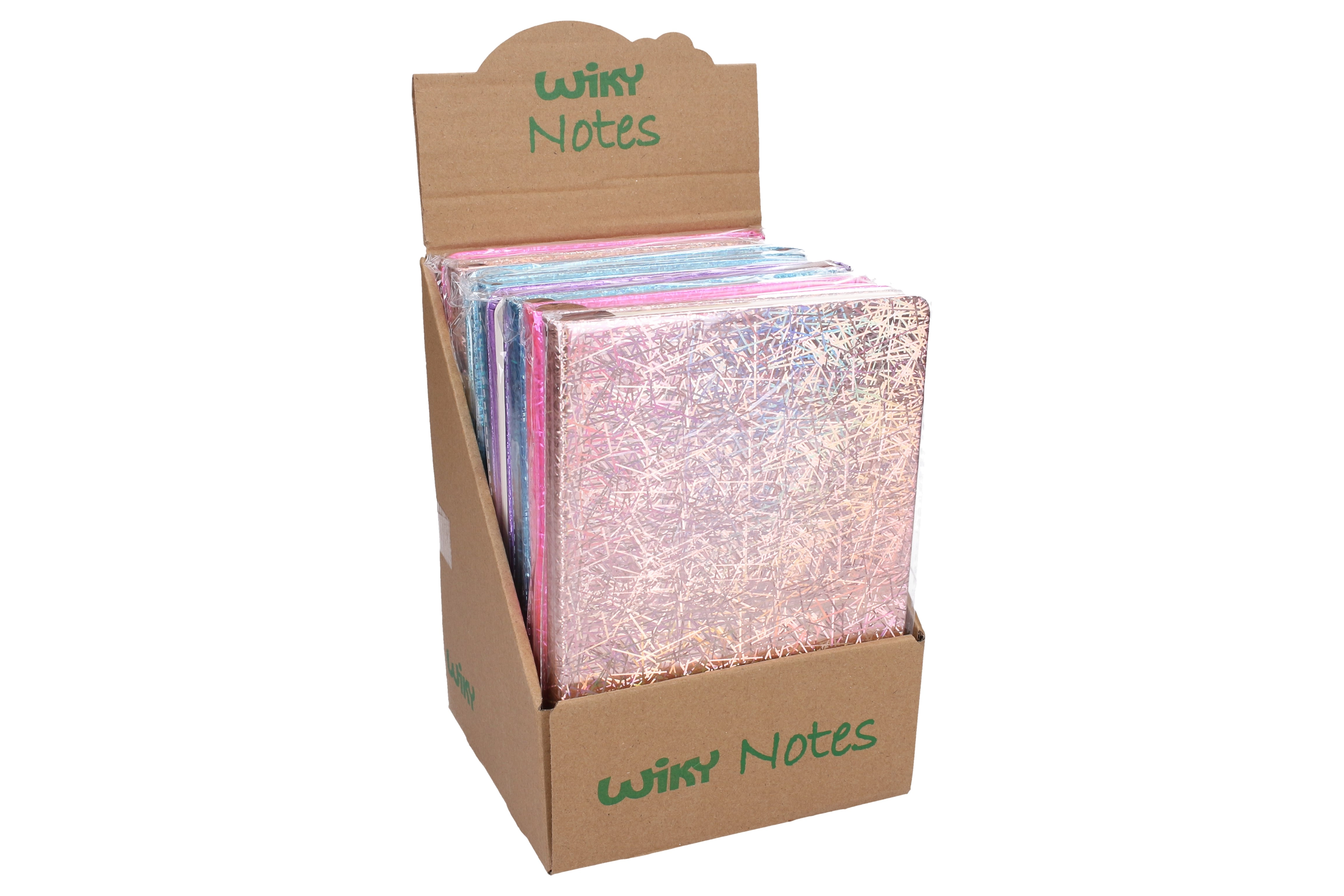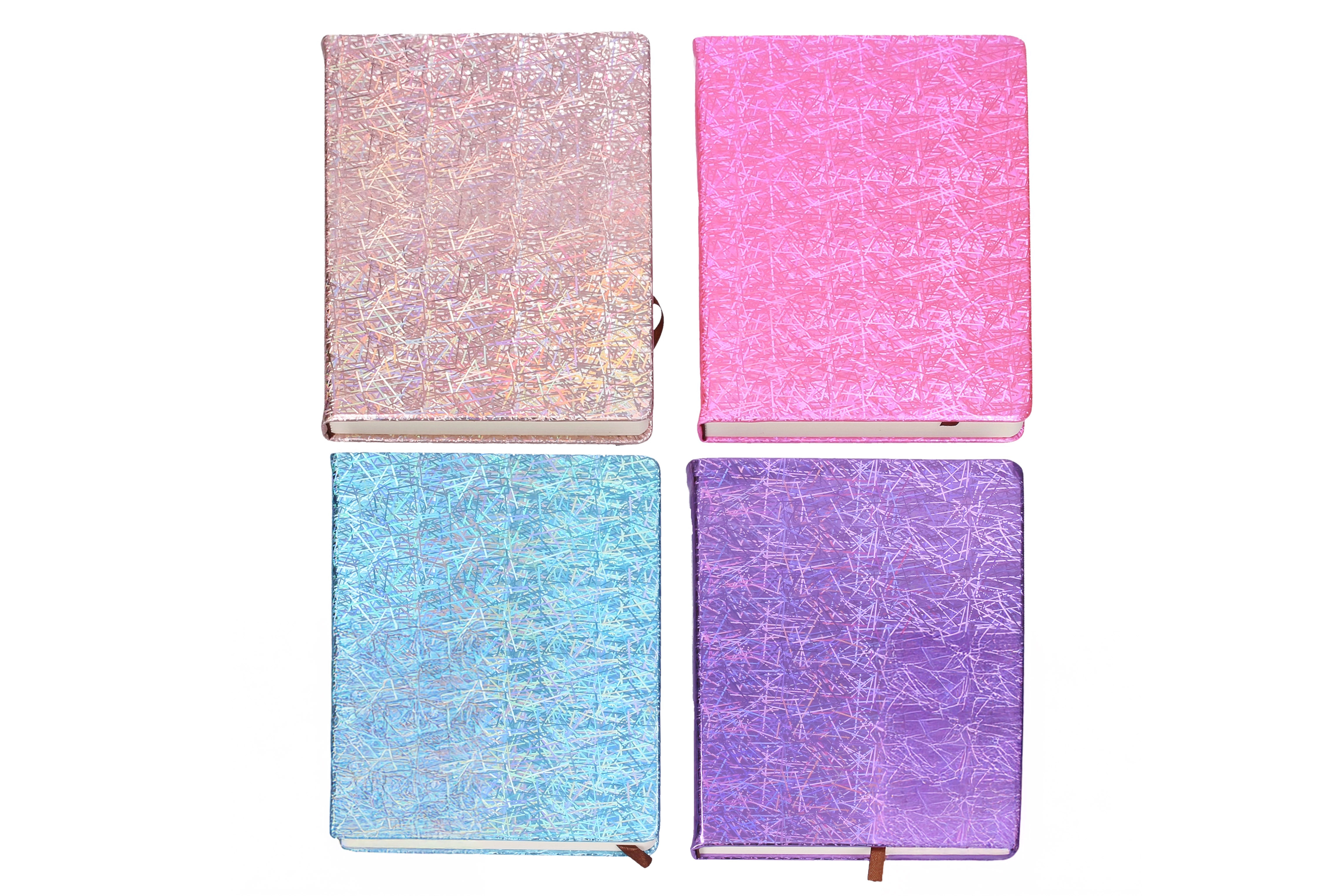 Mix barev – fialová, stříbrná, růžová a modrá – vám umožní vybrat si variantu podle nálady či stylu. Notes je vhodný do školy, kanceláře i pro osobní plánování.