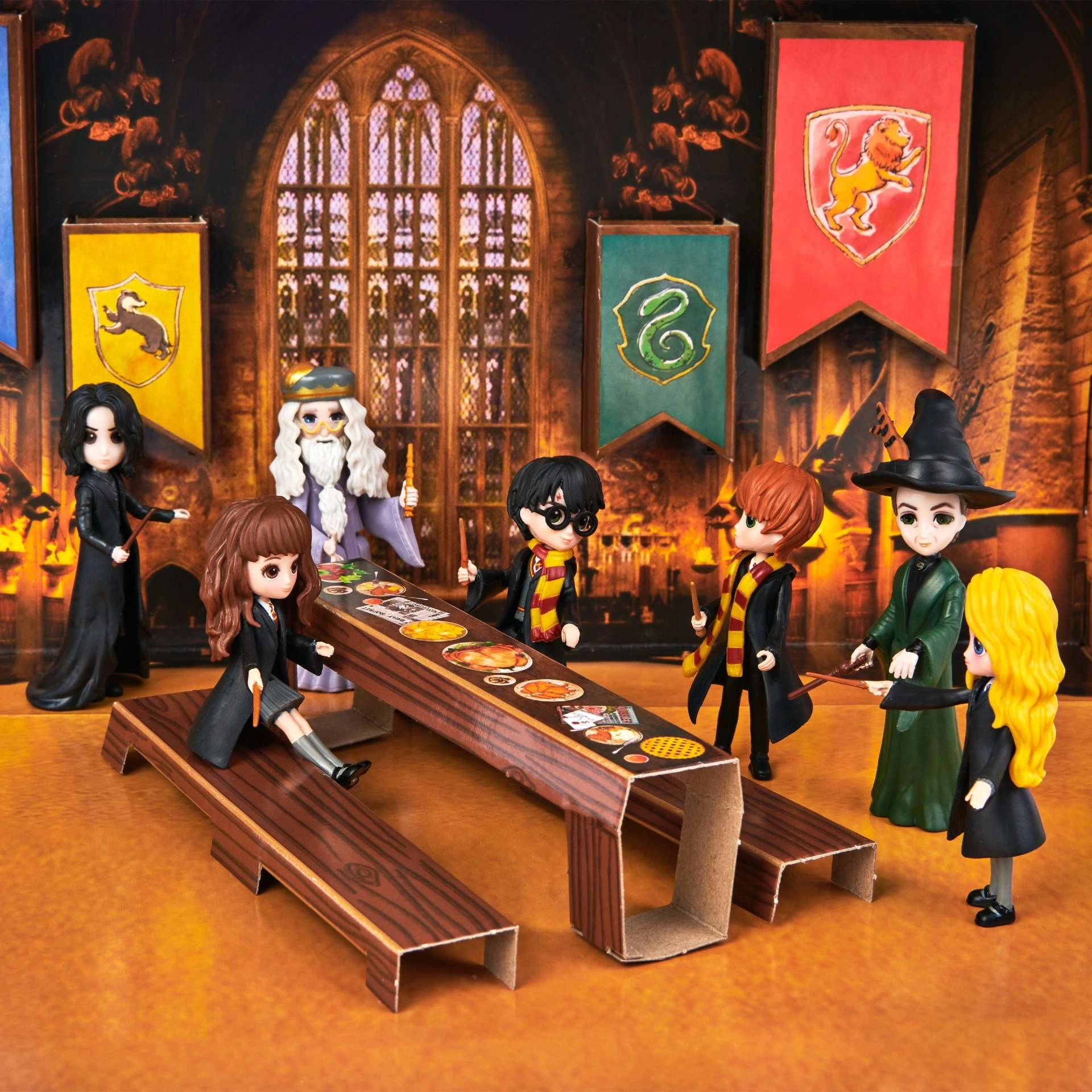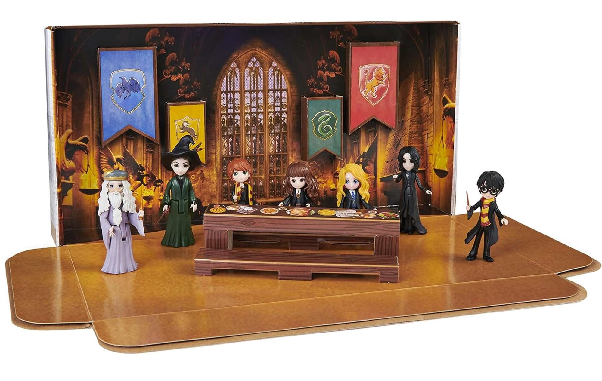 Vstupte do Bradavic s kompletním týmem oblíbených hrdinů ze série HARRY POTTER. Tento oficiální set Spin Master přináší sedm ikonických postav a chytrou herní scénu – vnitřní stranu krabice lze využít jako dioráma Velké síně s lavicemi a stolem, takže děti mohou snadno přehrávat slavné momenty i vymýšlet vlastní příběhy.