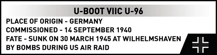 Model připomíná slavnou ponorku U-96, známou z knihy a filmu DAS BOOT – spojení historie a popkultury ve vaší sbírce.