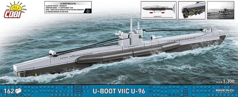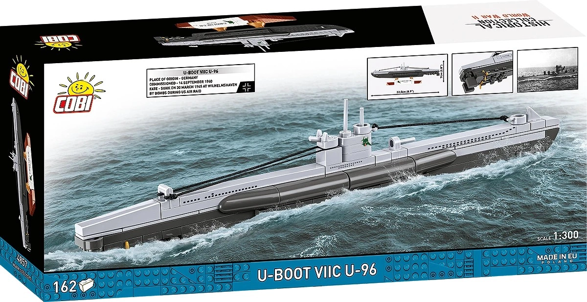 Sestavte si legendární ponorku U-BOOT VIIC U-96 v měřítku 1:300 z 162 dílků. Kvalitní evropská stavebnice potěší sběratele, fanoušky historie i milovníky filmu Das Boot. Nabízí realistické detaily trupu, věž s periskopem a elegantní stojánek pro vystavení modelu.