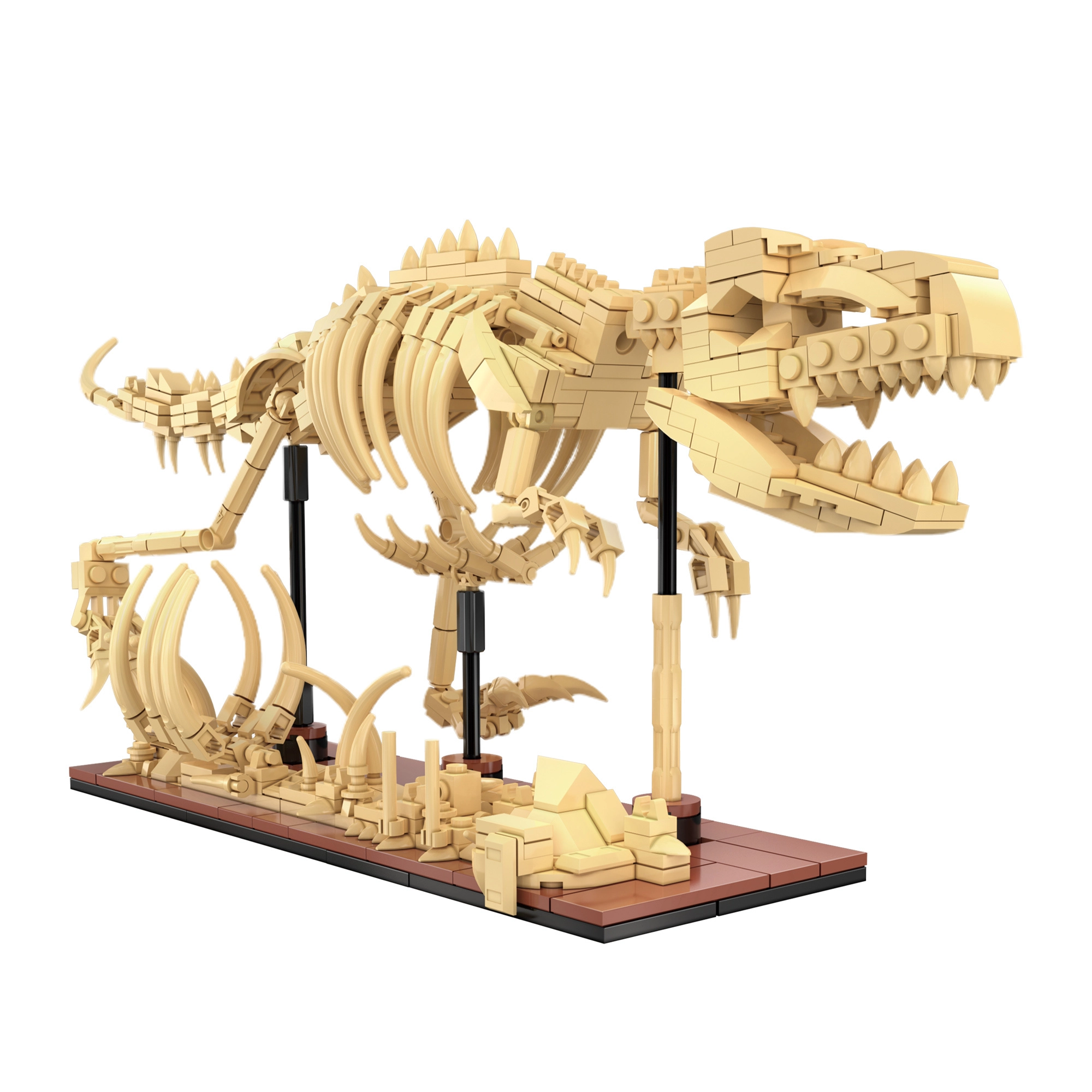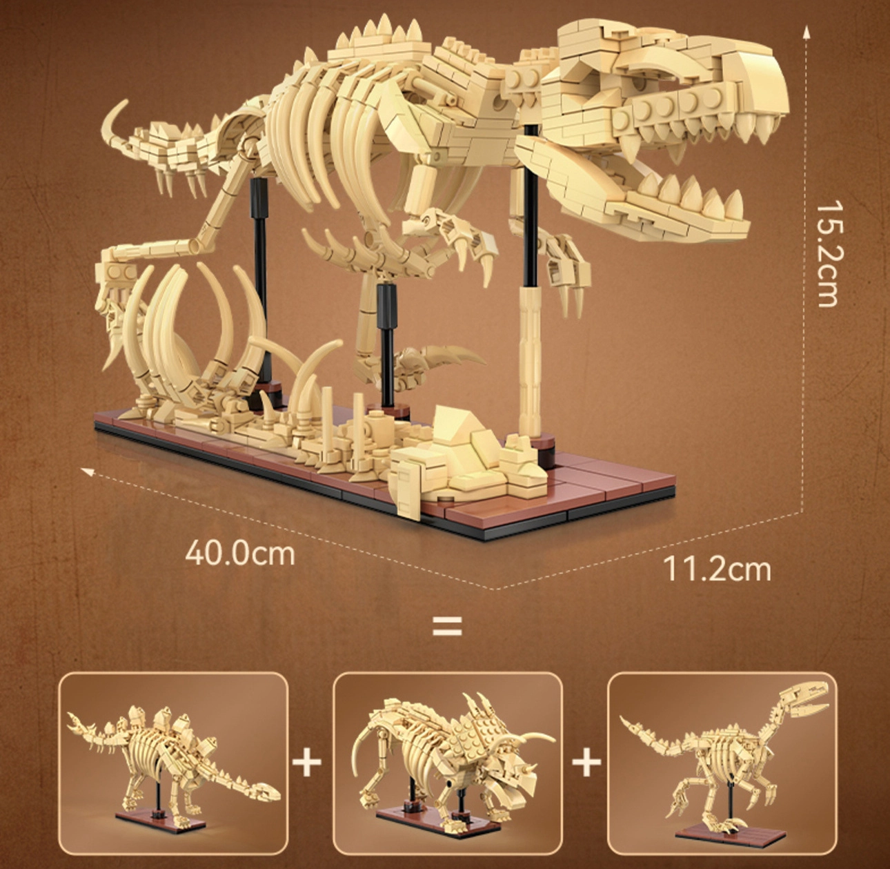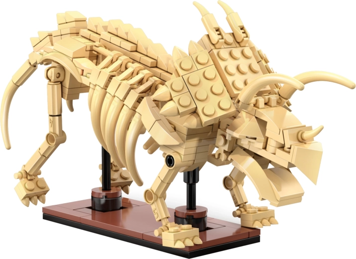 Postavte detailní kostry Triceratopse, Stegosaura a Velociraptora z 825 dílků a vystavte je na stojáncích. Každý model má pohyblivé klouby pro dynamické pózy.