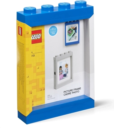 Stylově vystavte své vzpomínky s LEGO fotorámečkem v modré barvě. Nabízí možnost zavěšení na zeď i postavení na stůl či polici, podporuje dvě velikosti fotografií (10×15 cm a 12×17 cm) a je kompatibilní se skříňkami na minifigurky – snadno je na sebe skládáte jako klasické LEGO.