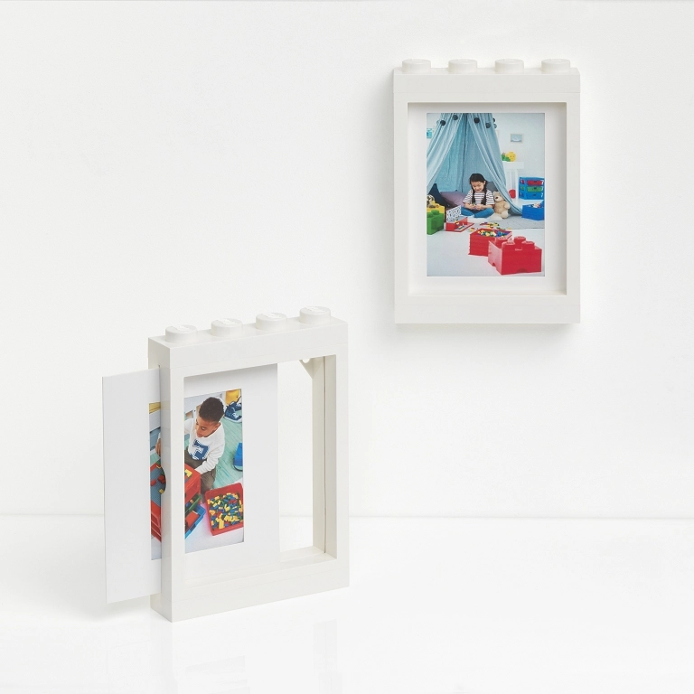 Elegantní bílý fotorámeček LEGO je ideální volbou pro všechny, kteří chtějí mít své oblíbené fotografie na očích. Díky chytrému designu ho můžete pověsit na zeď nebo volně položit na noční stolek, komodu či polici. Kartonová vsuvka je přizpůsobena dvěma oblíbeným rozměrům fotografií, takže snadno vložíte snímky 10×15 cm i 12×17 cm.
