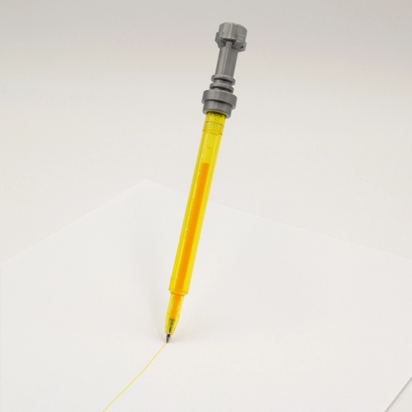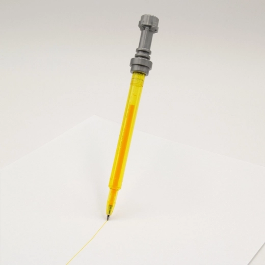 Proměňte běžné psaní v galaktické dobrodružství s tímto stylovým gelovým perem ve tvaru legendárního světelného meče ze ságy STAR WARS. Jemný hrot 0,7 mm a žlutý gelový inkoust pro plynulé a čisté psaní, které ladí s barvou těla pera.