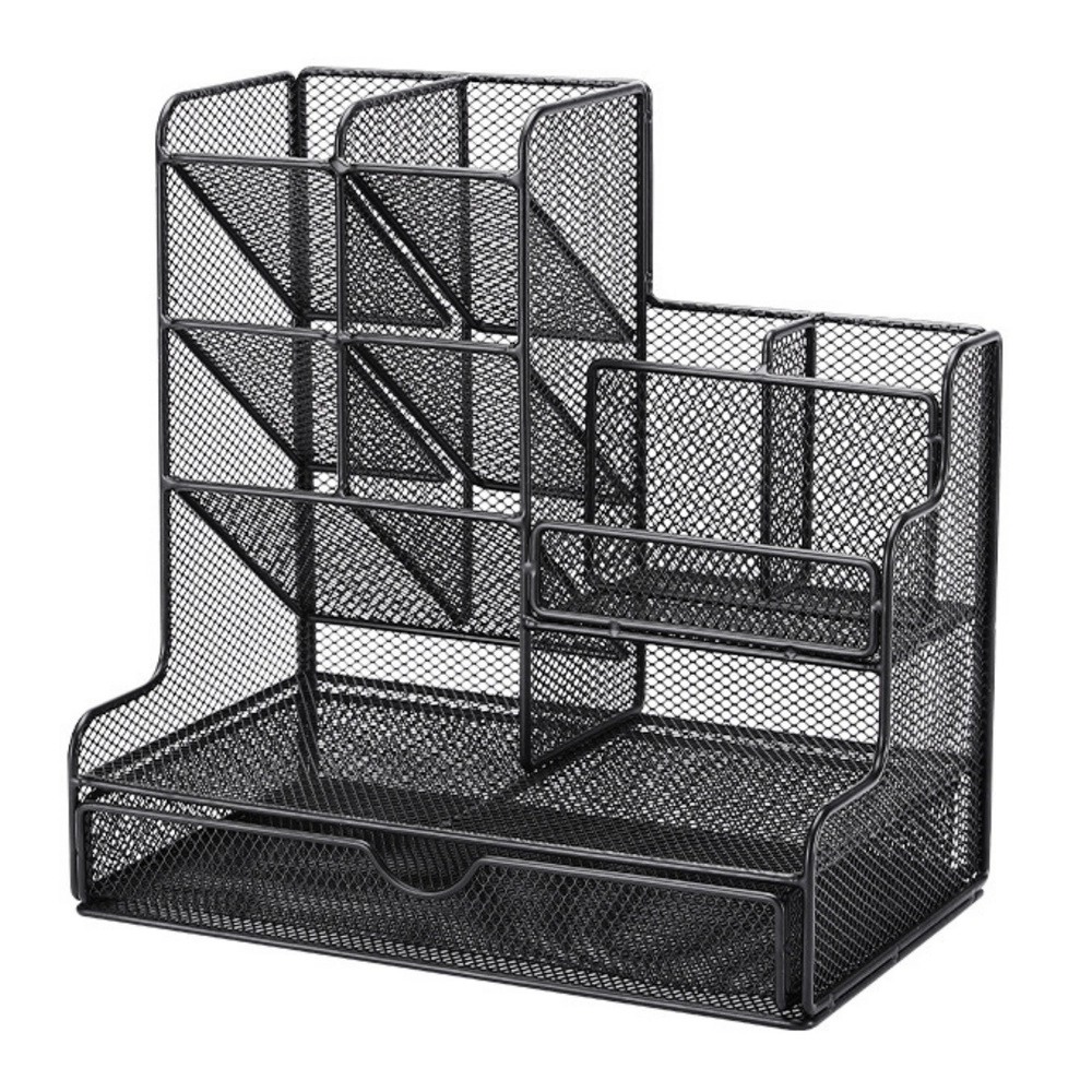Udržte si pořádek na pracovním stole s organizérem z lakované kovové síťoviny, který kombinuje moderní design a vysokou odolnost. Černé provedení ladí s každým interiérem a podporuje profesionální vzhled vašeho pracovního místa.