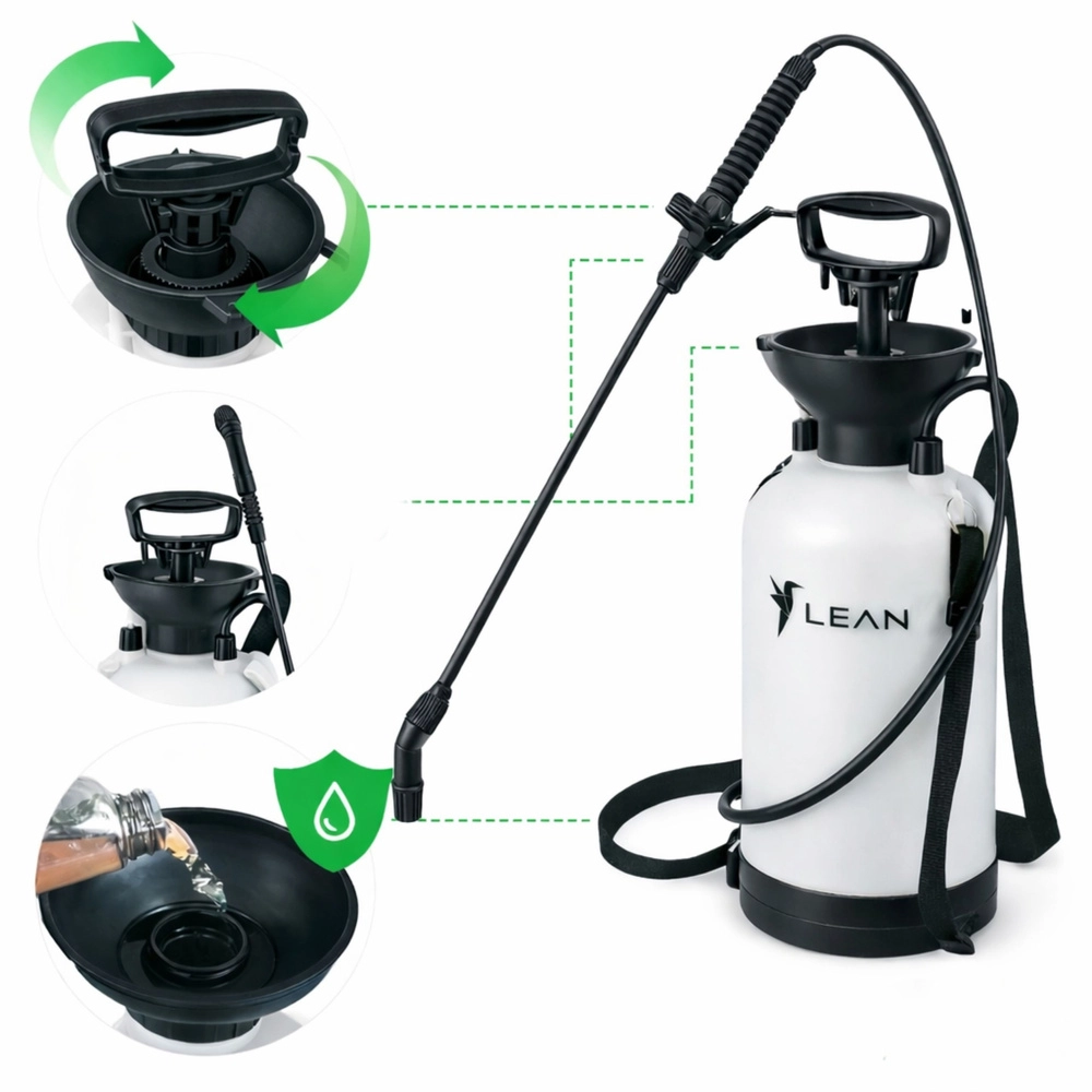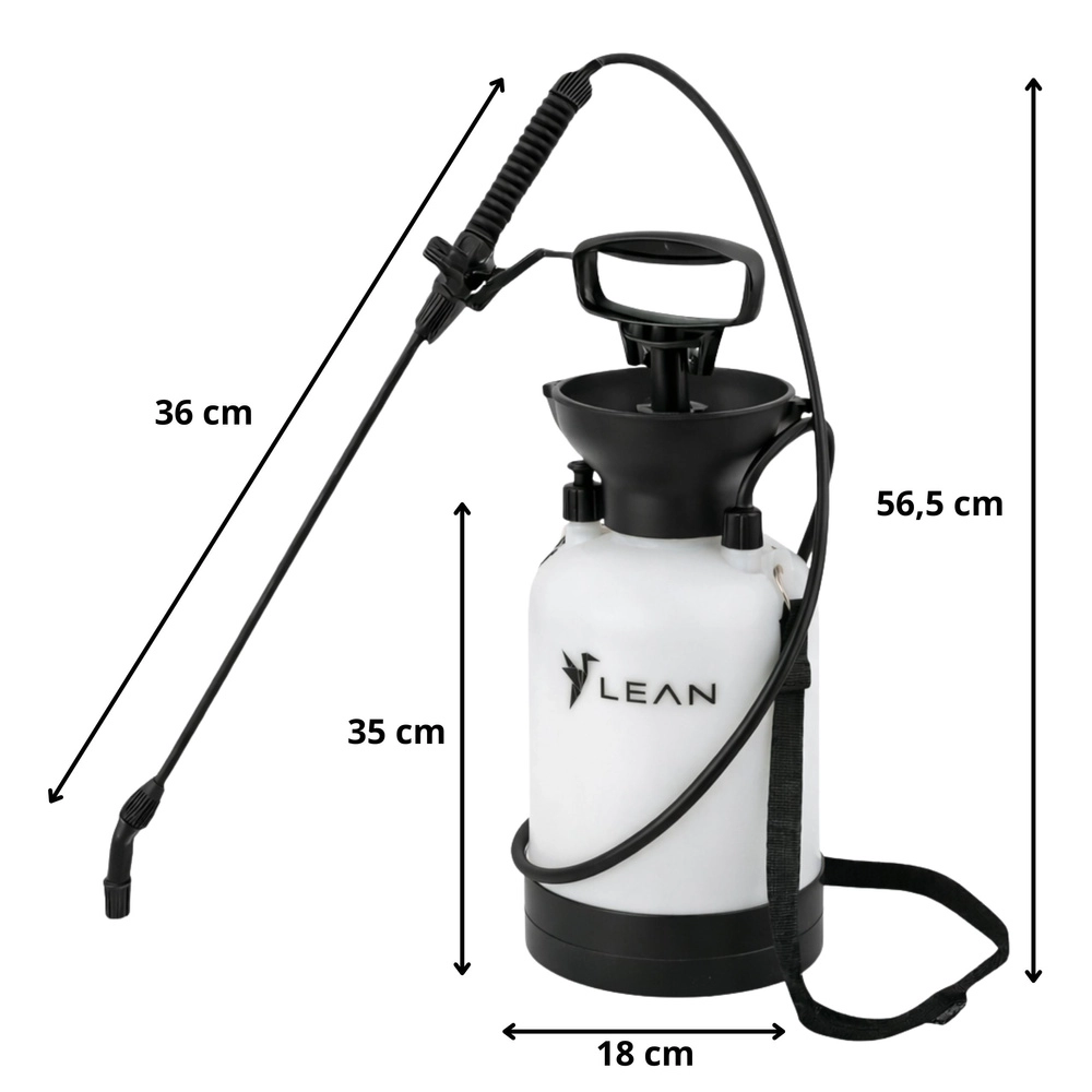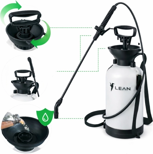 Praktický ruční tlakový postřikovač LEAN 3 l pro zahradu, skleník, balkon i terasu. Díky regulovatelné trysce, pohodlnému čerpání a pásku přes rameno zajistí přesné zalévání, hnojení i aplikaci přípravků na ochranu rostlin. Průsvitná nádoba s měrkou a široké hrdlo s nálevkou usnadňují plnění a kontrolu hladiny, zatímco zámek spouště umožňuje komfortní nepřerušovanou práci.