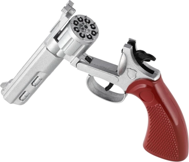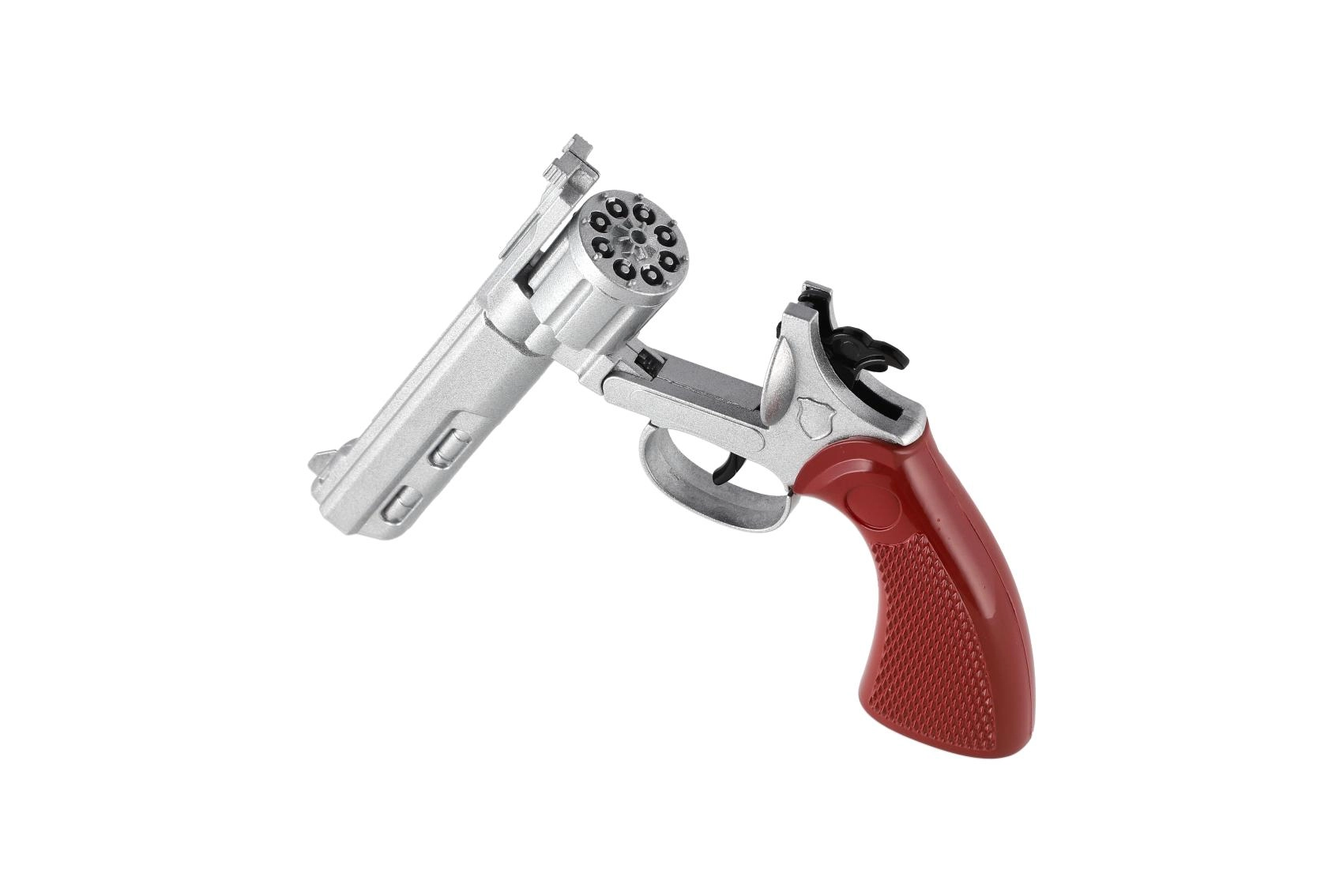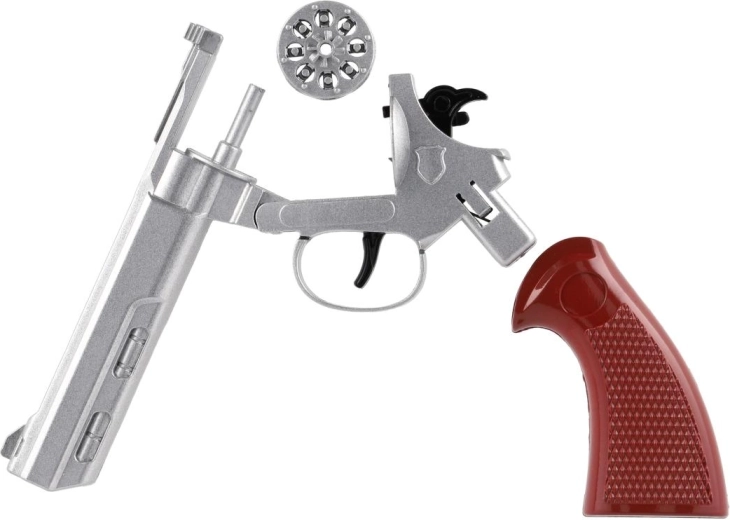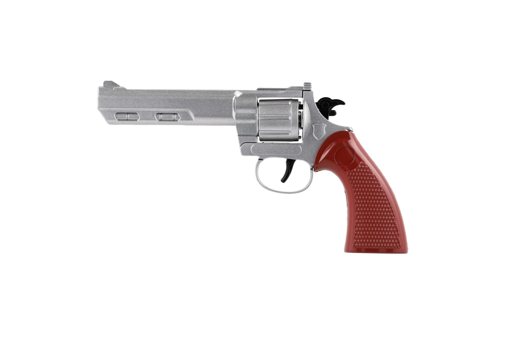 Tento stylový 22cm revolver nabízí autentický vzhled a spolehlivou funkci pro dětskou hru. Kovové tělo působí realisticky, zatímco zvukový efekt při použití 8ranových kapslí umocní atmosféru dobrodružství. Díky ergonomické rukojeti se pistole dobře drží i při delším hraní.