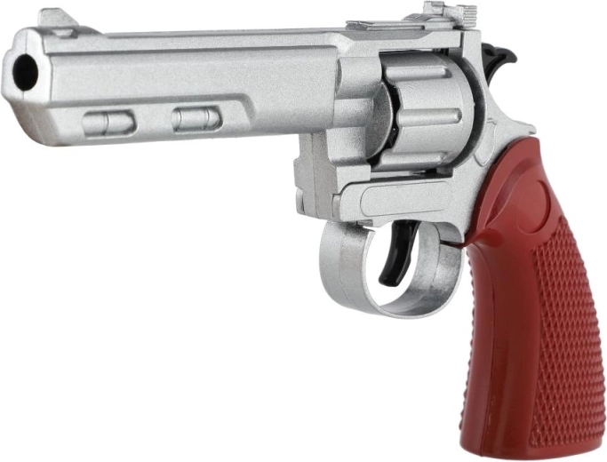 Tělo revolveru je z kovu, což zajišťuje věrný vzhled a vyšší odolnost při běžném hraní.