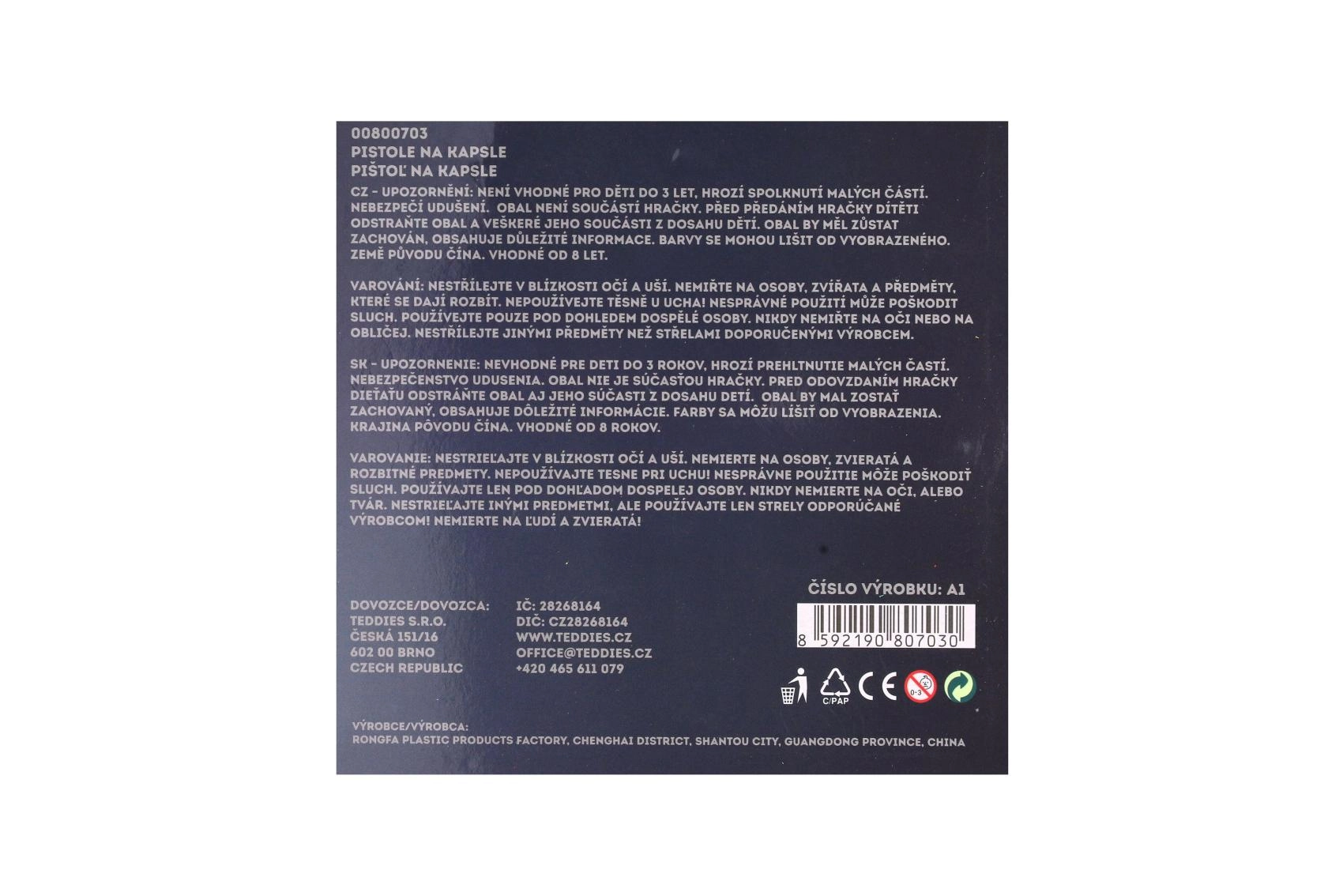 Užijte si akční zábavu s touto kovovou kapslovou pistolí pro 8ranové pásky. Realistické provedení, odolná konstrukce a ergonomická rukojeť zajišťují pohodlné držení a věrný zážitek ze hry. Ideální jako doplňek ke kostýmu i pro tematické hry. Hračka nevystřeluje projektily.