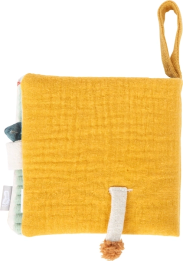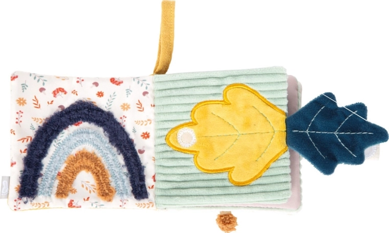 Každá strana nabízí jiný zážitek – šustivé panely, látkové záložky, jemné plyšové prvky a integrované chrastítko pro zvukové vjemy.