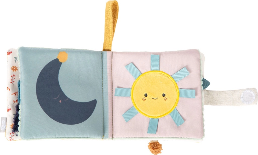 Součástí je i popruh/klip pro bezpečné připevnění ke kočárku, autosedačce nebo na hrazdičku, takže knížka zůstane vždy po ruce. Praktický formát a lehká konstrukce z ní dělají perfektní hračku na cesty i na doma.