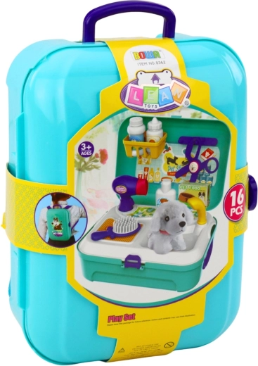 Tento tematický set pro malé milovníky zvířat spojuje zábavu a učení. Po otevření se kufřík promění v mini pečovatelské stanoviště s přehlednými přihrádkami na všechny doplňky. Děti mohou svého plyšového mazlíčka česat, fénovat, mýt a opečovávat, zatímco se učí odpovědnosti a péči.