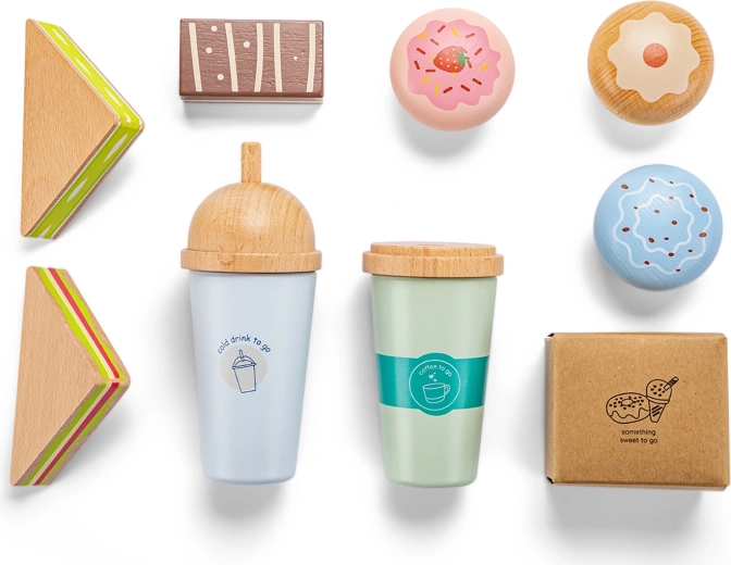 Dřevěný hrací set Malá kavárna je skvělou volbou pro děti, které milují kavárenskou atmosféru. Díky reálným doplňkům se mohou proměnit v baristy, připravovat „kávy s sebou“, skládat sendviče a servírovat sladké muffiny. Hra zábavně rozvíjí jemnou motoriku, komunikaci a představivost.