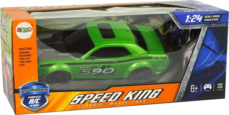 Součástí balení je dálkový ovladač s přehledným rozložením tlačítek pro jízdu dopředu/dozadu a zatáčení. Hračka je označena certifikátem CE pro bezpečné používání a je vhodná pro děti od 6 let. Pro nejlepší výkon používejte na čistém, suchém povrchu – auto není určeno k jízdě po písku, vodě a sněhu.