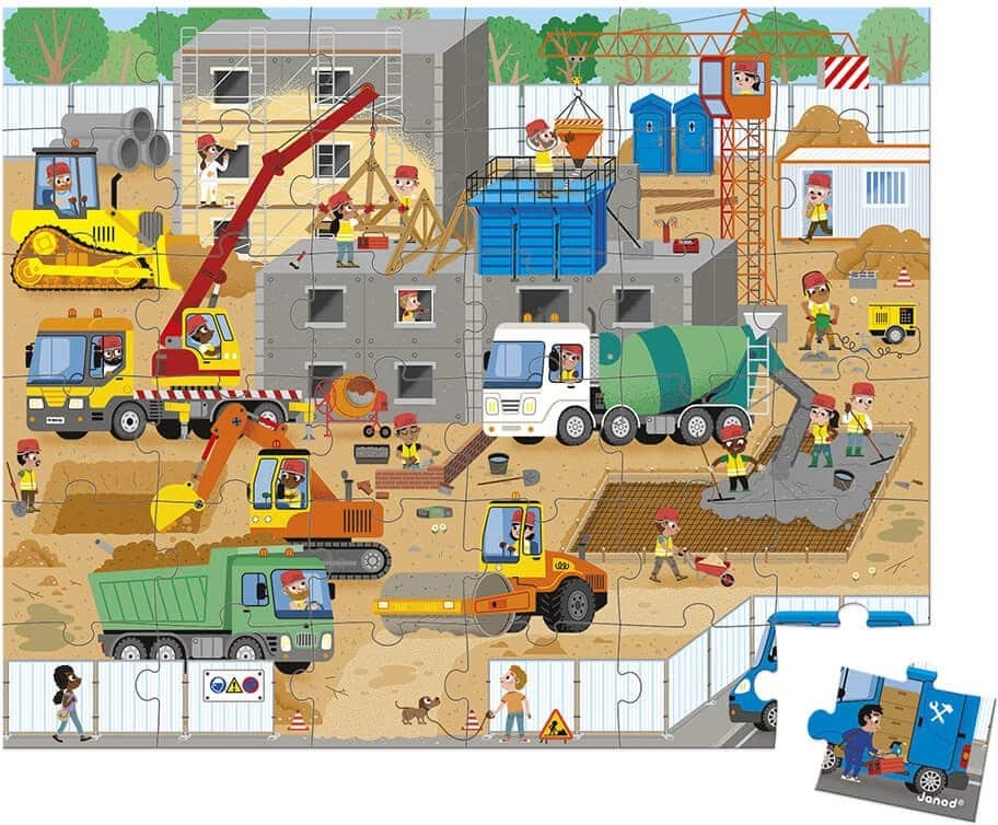 Objevte zábavné puzzle v kufříku od značky JANOD s motivem stavby. Díky 36 dílkům je ideální pro děti, rozvíjí jemnou motoriku, logiku a trpělivost. Praktický kufřík na doma i na cesty a plakátová předloha usnadní skládání. Hotové puzzle má rozměr cca 50 × 40 cm.