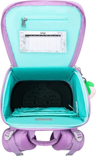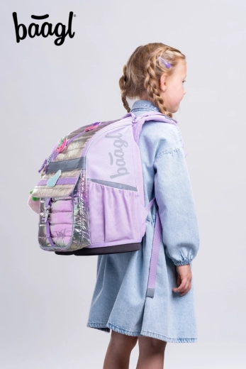 Aktovka BAAGL Zippy Lavender kombinuje nízkou hmotnost s ergonomií a dlouhou životností. Posuvný zádový systém ERGO ADJUSTABLE umožňuje nastavení do tří velikostí, takže aktovka doslova roste s dítětem. Plně nastavitelné popruhy, hrudní přezka a prodyšné polstrování zajišťují zdravé a pohodlné nošení po celý školní den.