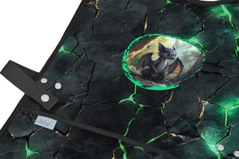 Promyšlené detaily jako dvojice předních kapes nabízejí místo na štětce, lepidla či jiné potřeby. Oblíbený motiv draků děti baví a podporuje kreativitu.