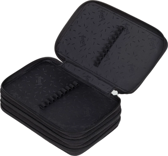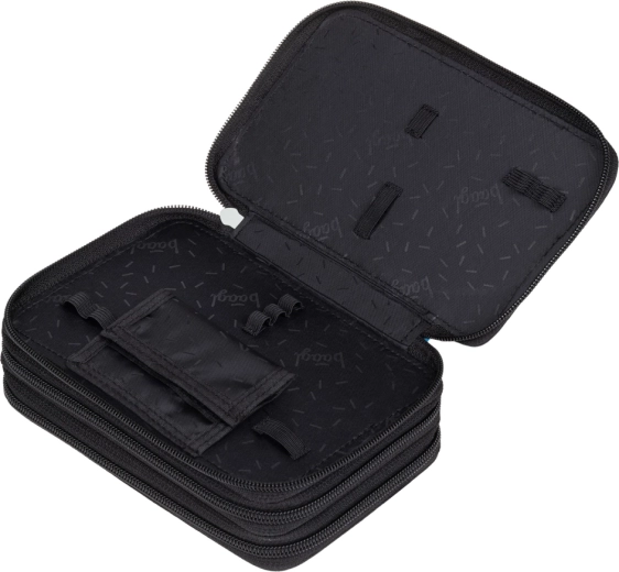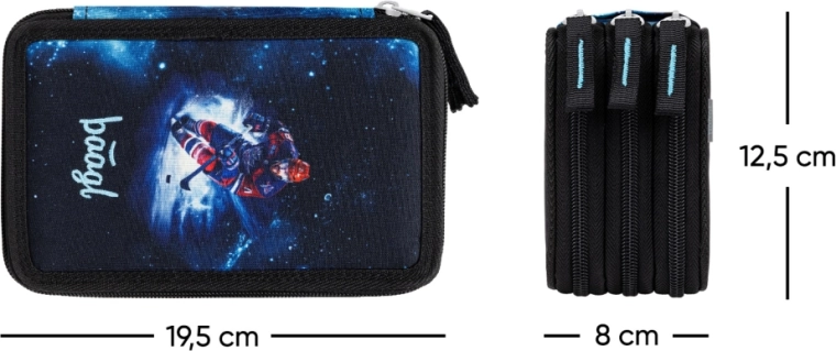 Penál nabízí tři samostatné zipové sekce, které usnadňují organizaci psacích potřeb, pravítek, gum a drobných doplňků. Zesílený hřbet zlepšuje manipulaci při zavírání a otevírání, takže se penál pohodlně používá i plně naplněný.