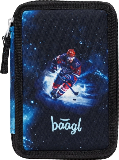 Tento třípatrový penál s atraktivním hokejovým motivem udrží vaše školní potřeby přehledně uspořádané. Pevná textilní konstrukce, zesílené okraje a kvalitní zipy YKK zajišťují dlouhou trvanlivost i při každodenním používání. Elastické úchyty jsou navržené tak, aby bezpečně držely jak tenké tužky, tak i silné pastelky a fixy.