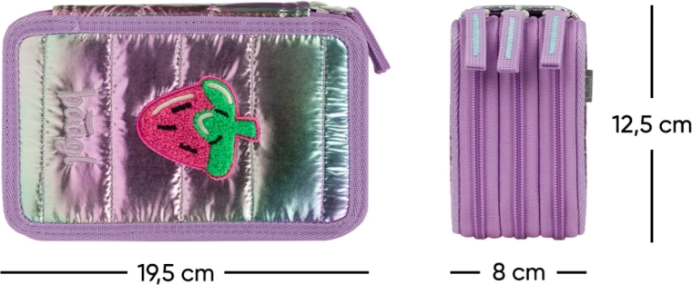 Tento třípatrový školní penál v odstínu Lavender je navržen pro maximální přehlednost a pohodlí při každodenním používání. Tři samostatná patra poskytují dostatek místa na pastelky, fixy, propisky, pravítka i další drobnosti, zatímco kvalitní zipy YKK zajišťují hladké a dlouhodobě spolehlivé zapínání.