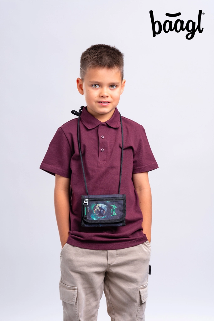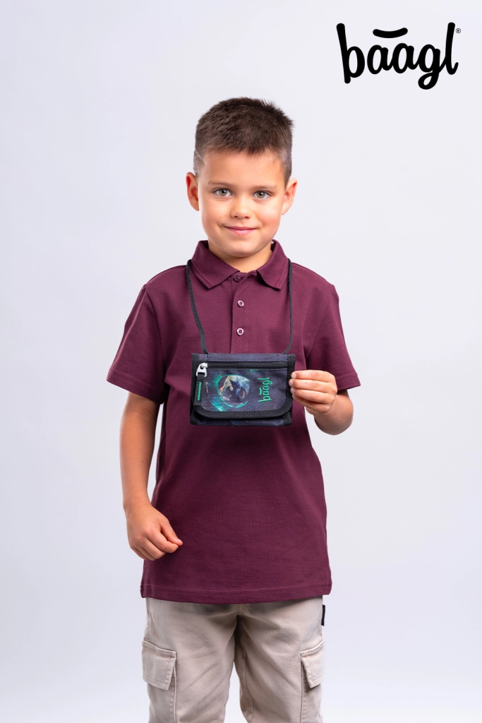 Nastavitelná šňůrka s bezpečnostní pojistkou umožní pohodlné a jisté nošení peněženky na krku při cestě do školy i na kroužky.