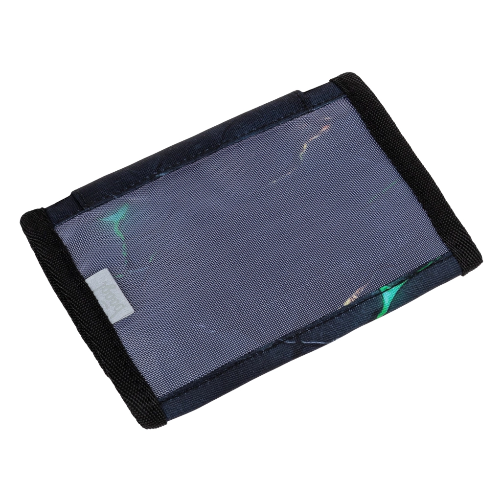 Peněženka je vyrobena z odolného, částečně recyklovaného textilu, který snese každodenní používání. Praktické uzavírání na suchý zip, samostatná kapsička na drobné a jmenovka uvnitř zajišťují pořádek a bezpečí vašich věcí.