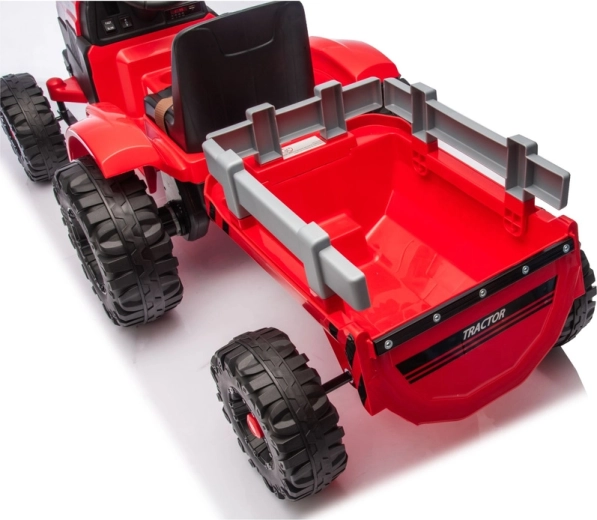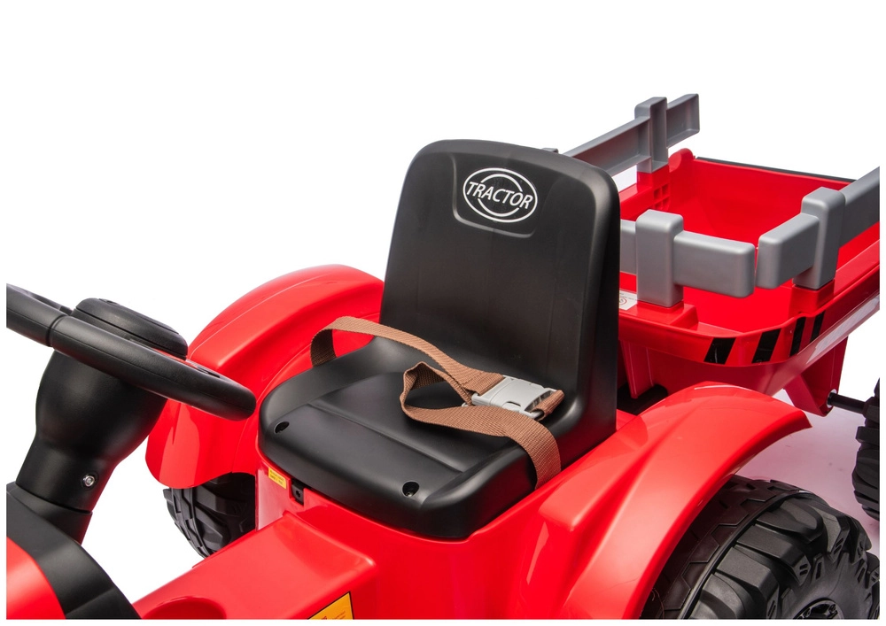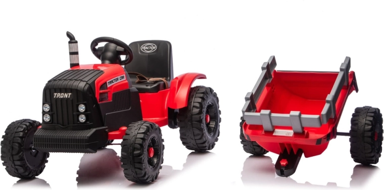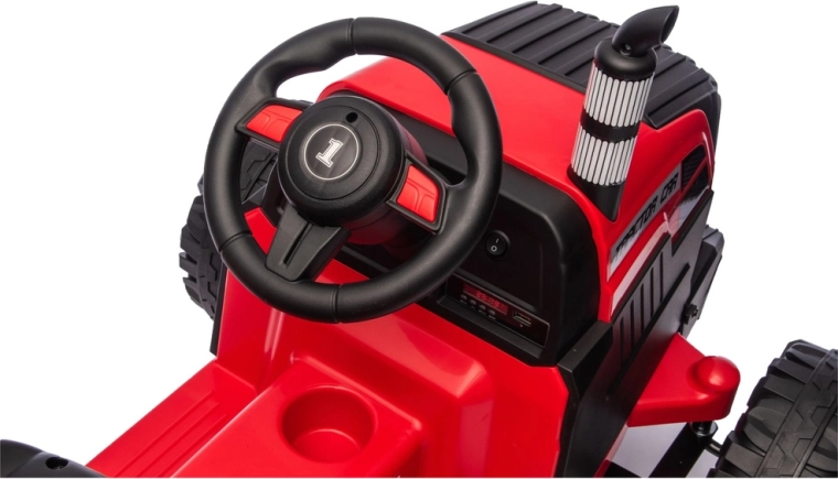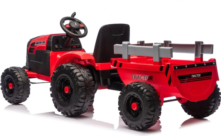 Tento červený elektrický traktor pro děti nabízí kombinaci zábavy, bezpečí a praktičnosti. Silná baterie 24V zajišťuje plynulý záběr, velká profilovaná kola drží stopu i na nerovném povrchu a přívěs umožní převážet hračky, písek nebo drobné náklady. Díky LED světlům a detailnímu zpracování působí traktor velmi realisticky.