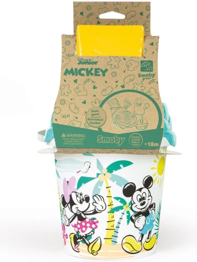 Ekologická sada na písek SMOBY z řady Green přináší dětem spoustu zábavy doma i na pláži. Obsahuje kyblík s licencí MICKEY MOUSE a MINNIE, lopatku a hrábě, formičku ve tvaru lodi a konvičku. Vyrobeno z rostlinného bioplastu z cukrové třtiny s odolným potiskem IML.
