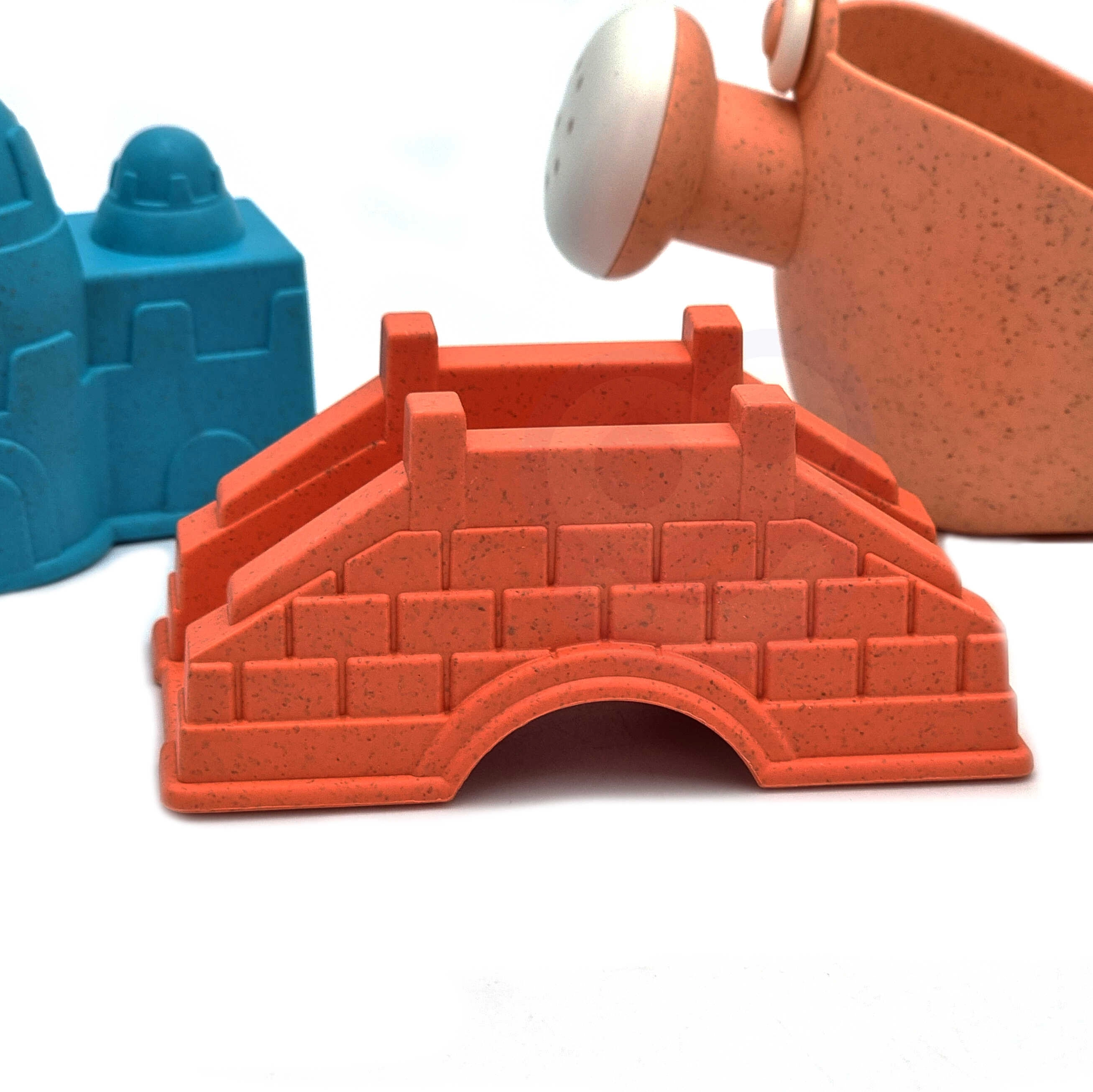 Formičky s motivy hradeb a mostu pomáhají dětem vytvářet pevné a detailní písečné stavby – skvělé pro pískoviště i pláž.