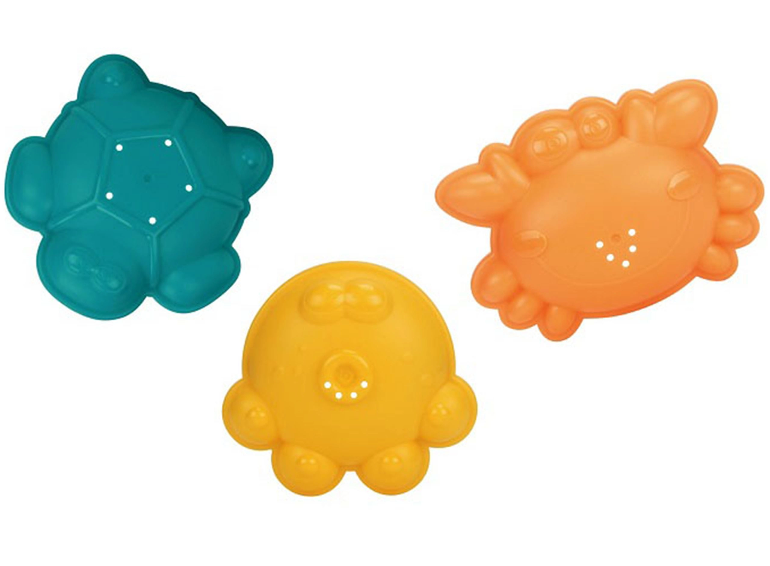Tři barevné formičky podněcují fantazii a tvoření v písku i ve vodě. Děti si snadno vytvarují želvu, kraba či chobotnici.