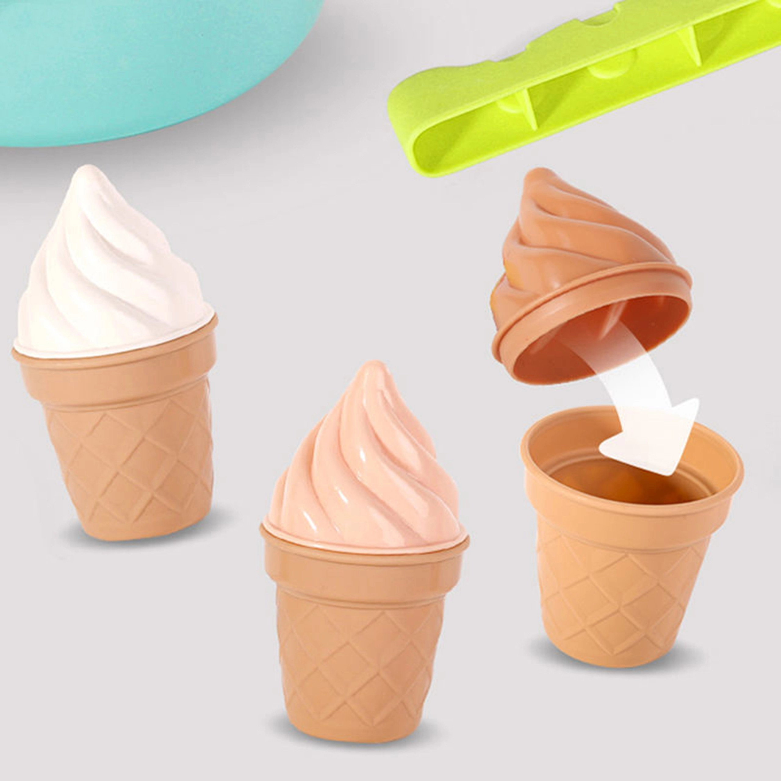 Sada Woopie Fun Ice Cream přináší dětem chutně vypadající "zmrzlinářské" dobrodružství do každé pískoviště. Foremky ve tvaru kopečků poslouží jako formy na písek, pizza i chléb se dají dělit na menší části, takže si děti procvičí koordinaci i představivost. Díky pevné lžíci mohou stavět i v zimě – skvěle se hodí na hraní se sněhem.
