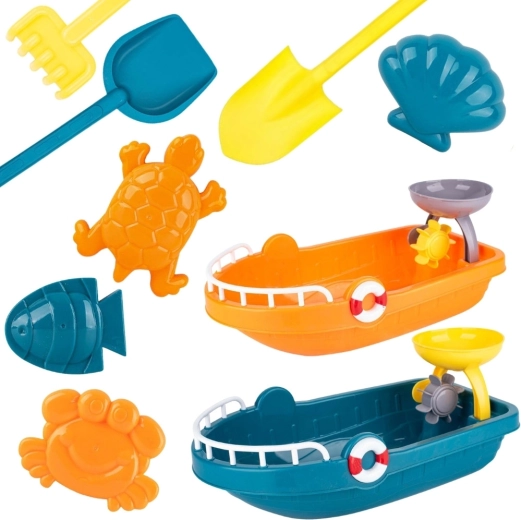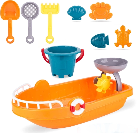 • Obsah balení: loď, vodní mlýnek s trychtýřem, kyblík, 4 formičky, hrábě, sítko, lopatka