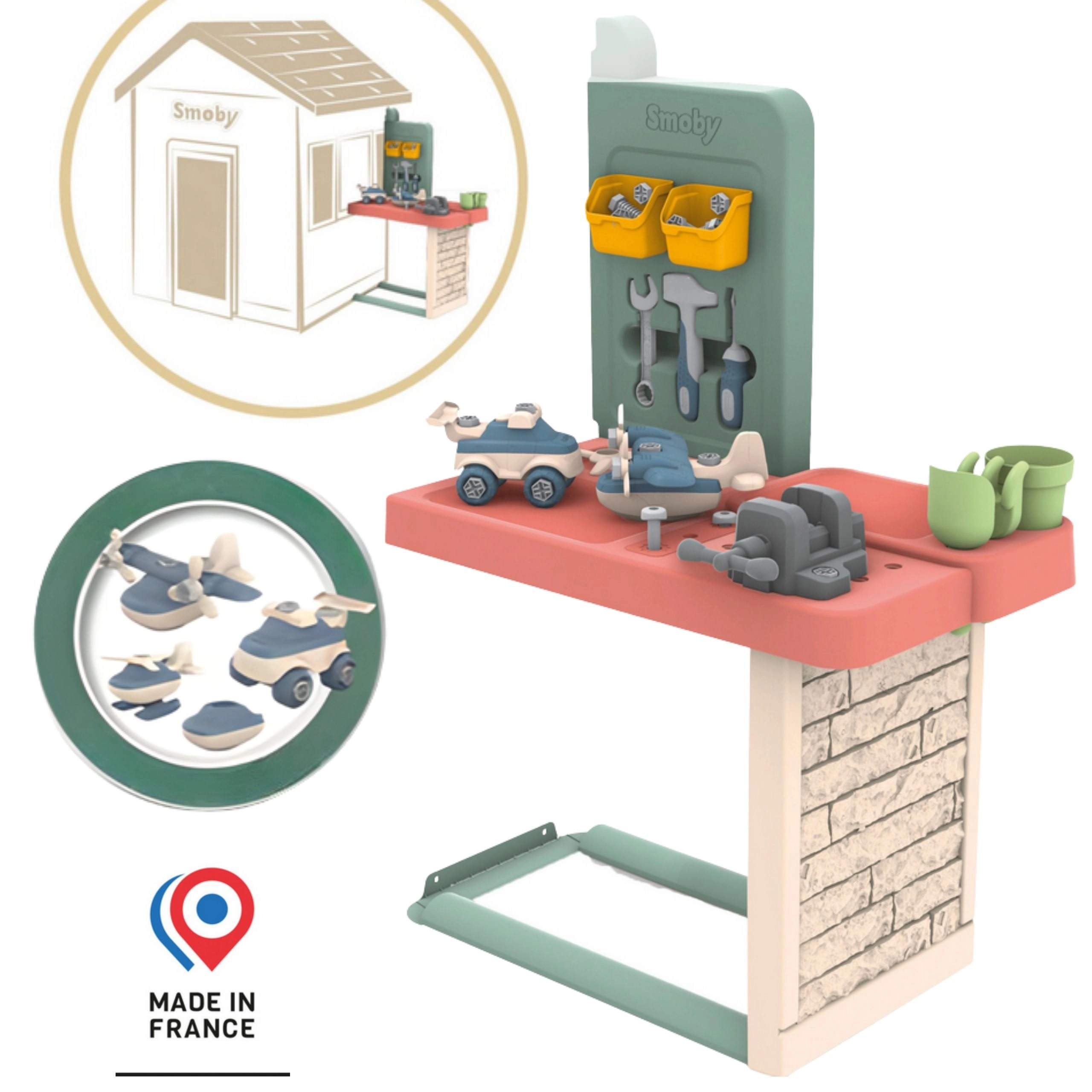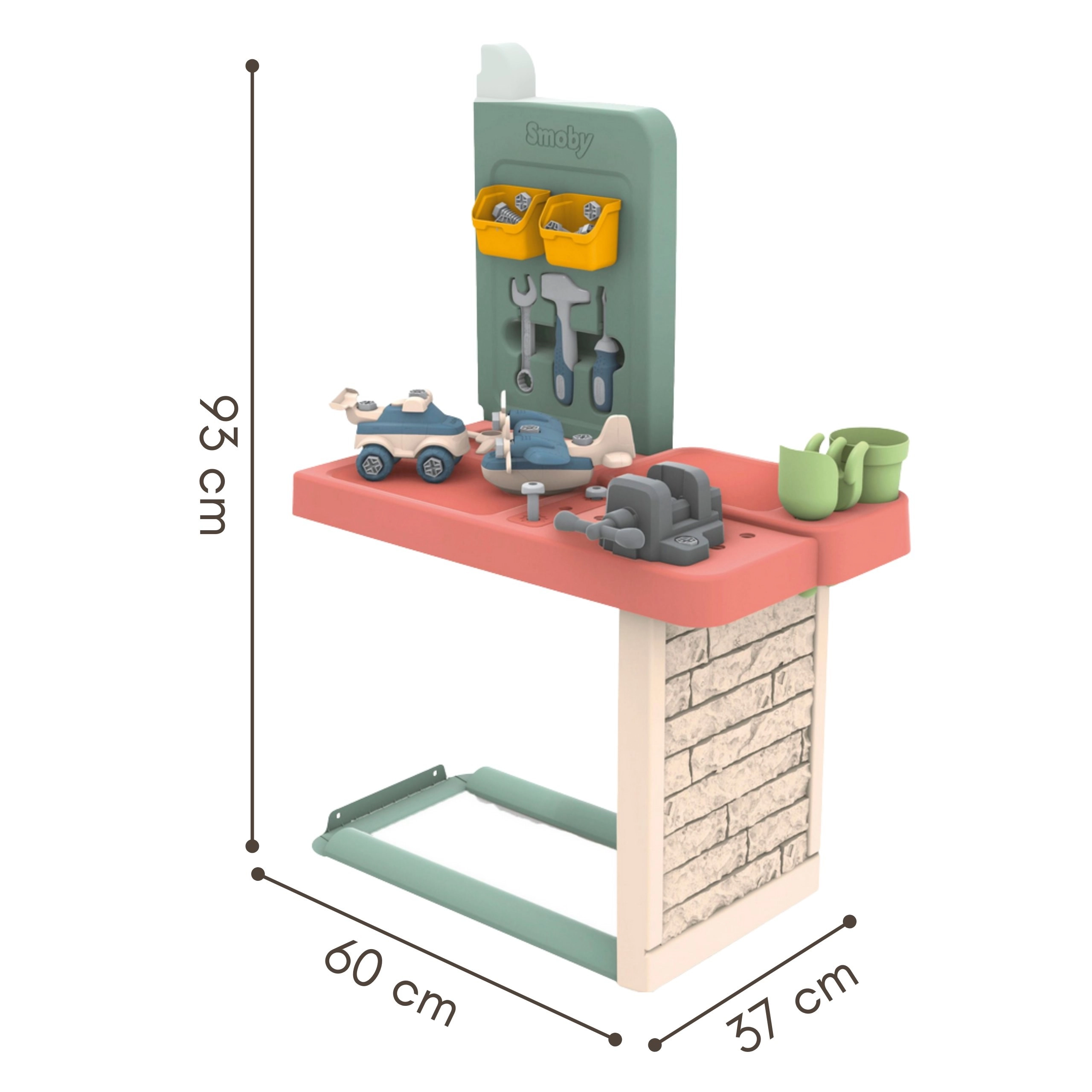 Tento přístavný dílenský stolek je ideální doplněk ke stavebnicovým domečkům SMOBY Life. Díky promyšlené organizaci a bohaté sadě nástrojů umožní dětem bezpečně objevovat svět kutilství, rozvíjet jemnou motoriku, koordinaci i logické myšlení. Široká pracovní plocha a úložné police udrží vše na svém místě, aby byla hra přehledná a zábavná.