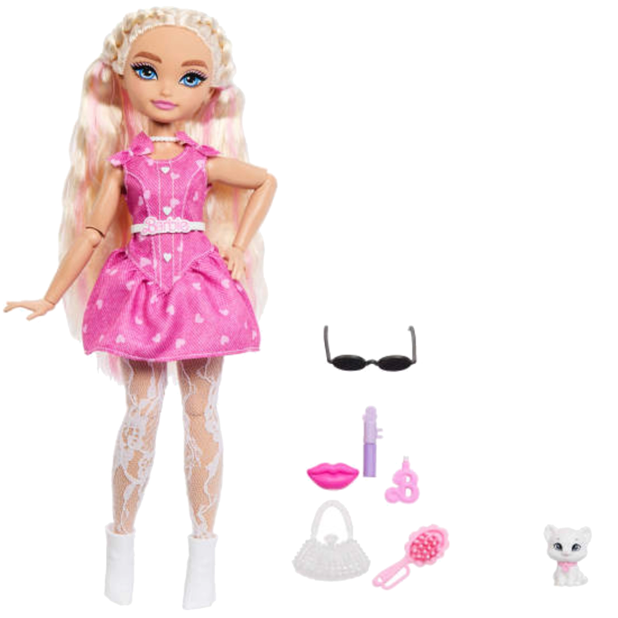 Panenka BARBIE Dream Besties Malibu je víc než jen módní doplněk do pokojíčku – je to nejlepší kamarádka pro kreativní hry. Díky kloubům pro pózování snadno zaujme různé pozice a její dlouhé vlnité vlasy s copánky vybízejí k nekonečným účesům. Odnímatelný outfit s šaty se srdíčky, krajkovými punčochami a stylovými botami dodá každé scénce módní šmrnc.