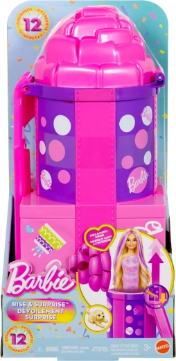 Rozbalte radost krok za krokem: po otevření „dárkové“ krabice BARBIE vyskočí na scénu a z balení se rozloží skluzavka, po které se může svézt roztomilý pejsek rovnou na narozeninovou párty. V tajemných pytlíčcích objeví děti dekorace, dortíky a doplňky pro dokonalou party atmosféru.