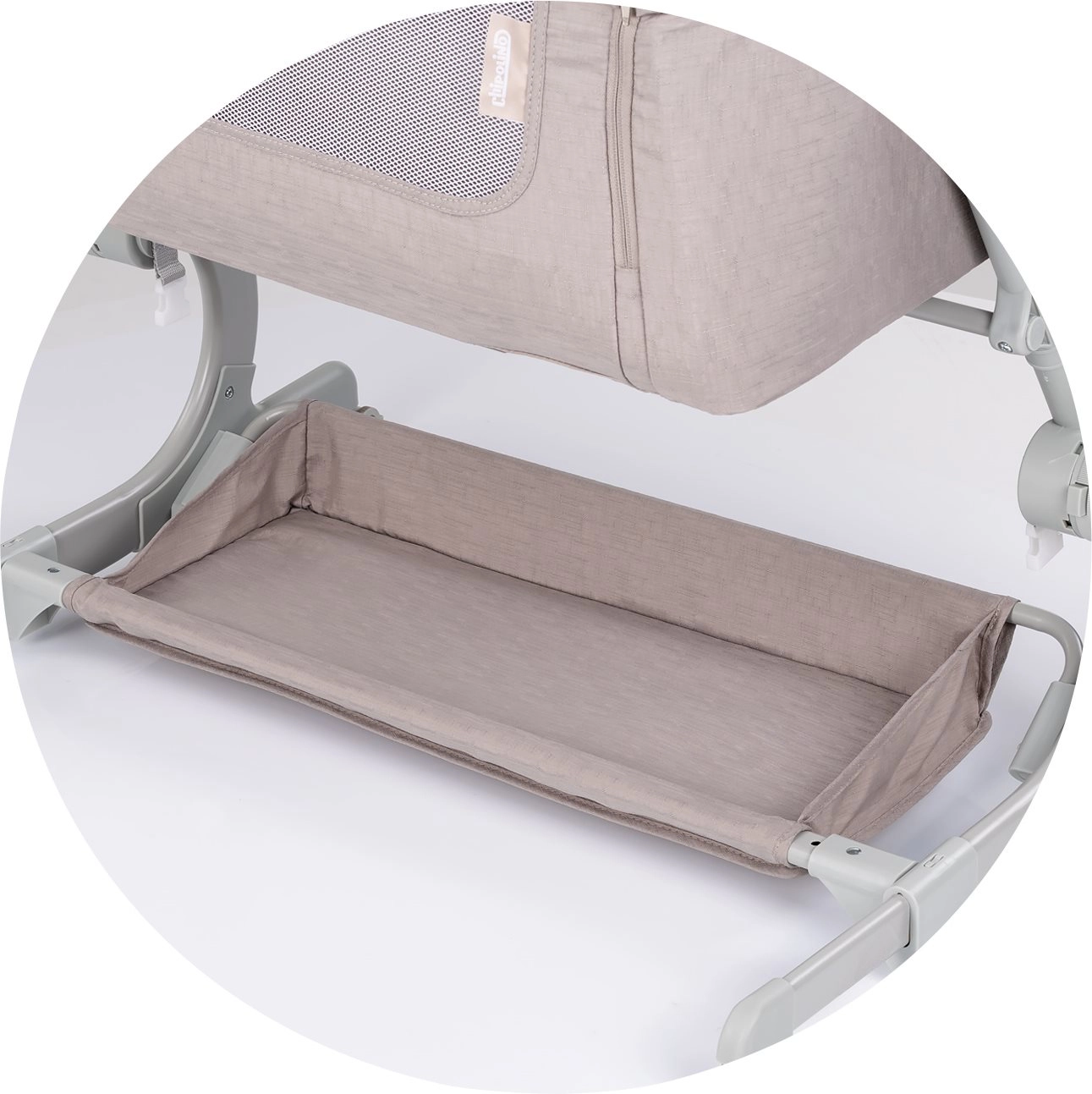 Snadno srovnáte úroveň lůžka s vaší postelí díky třem nastavitelným pozicím. Miminko spí bezpečně nablízku a noční péče je pohodlnější.