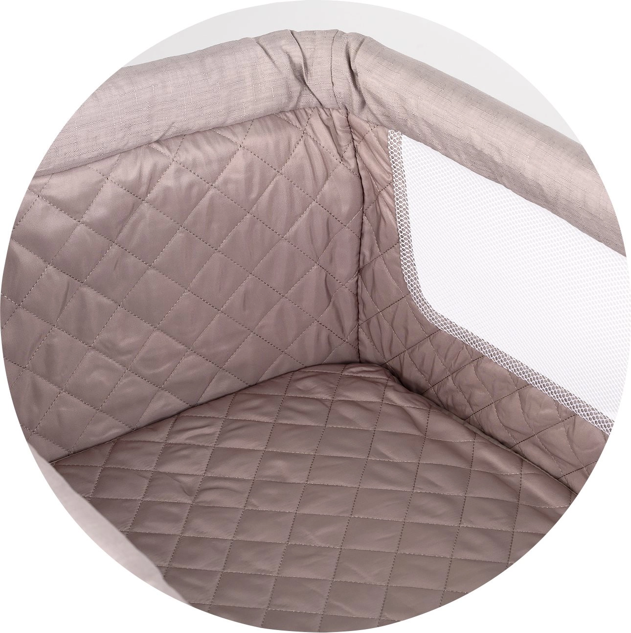 Velké mesh panely zajišťují optimální proudění vzduchu a lepší viditelnost na miminko pro klidný a bezpečný spánek.
