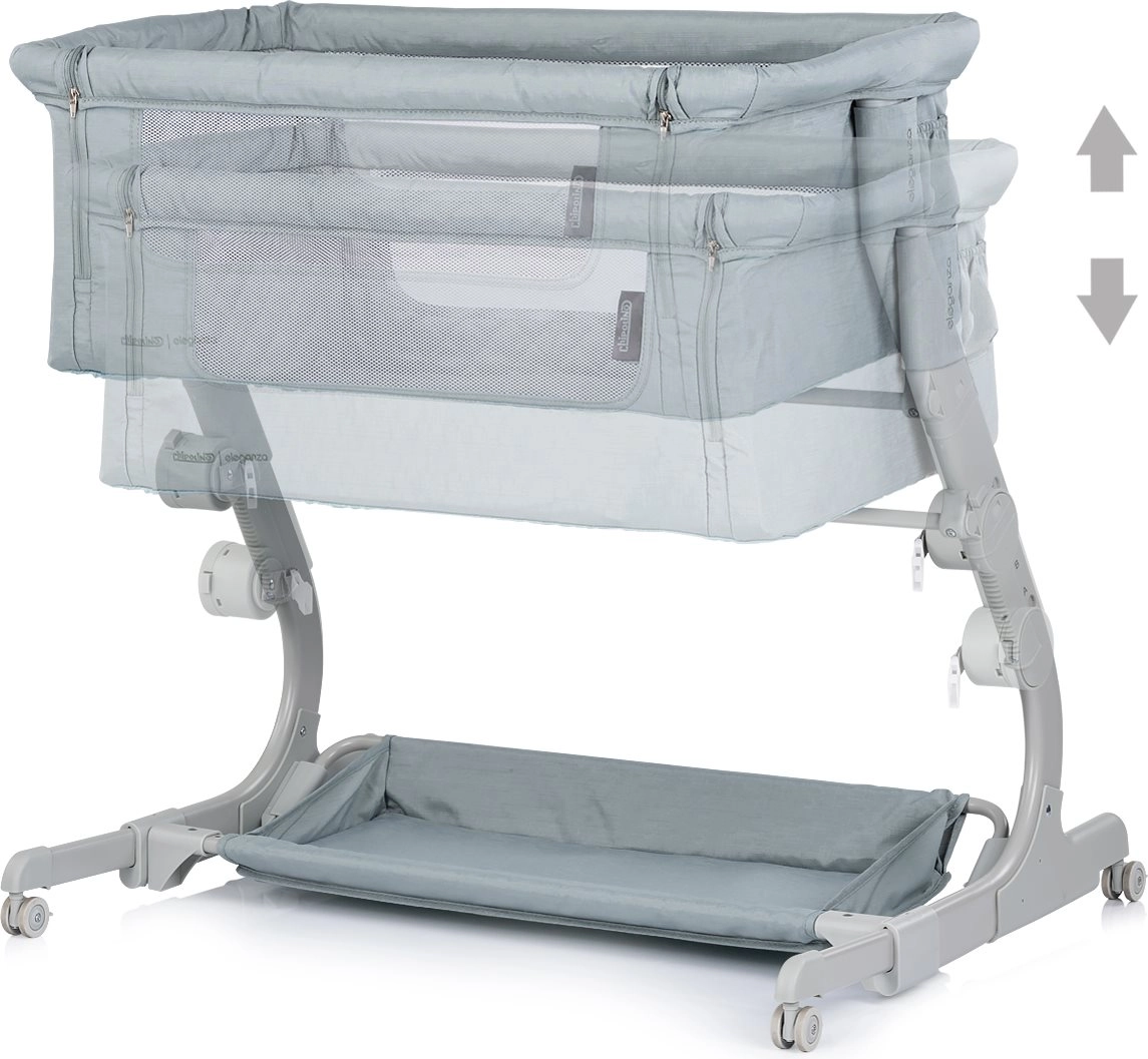 CHIPOLINO Eleganza 2v1 slouží jako samostatná postýlka i jako bezpečná přistýlka k posteli rodičů. Lehká, ale stabilní kovová konstrukce v kombinaci se síťovanými boky zajišťuje skvělou cirkulaci vzduchu a stálý dohled nad miminkem. Díky 3 nastavitelným výškám snadno srovnáte lůžko s úrovní vaší postele.