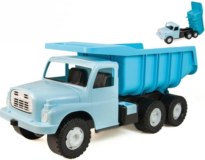Legendární Tatra 148 v elegantní světle modré je velké a odolné sklápěcí auto o délce 72 cm, ideální na pískoviště i domů. Má robustní konstrukci, pojistku proti samovolnému vyklopení korby a je vyrobená z bezpečných plastů bez ftalátů. Děti si mohou na korbu bezpečně sednout a svézt se. Český výrobek od DINO Toys, doporučeno od 1 roku.