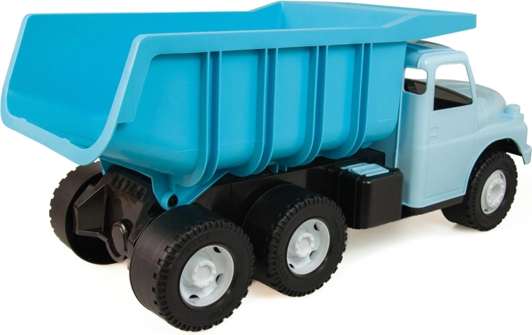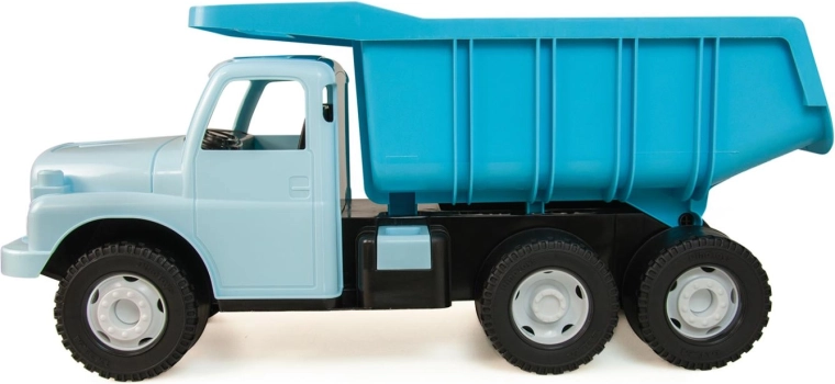 Bezpečnost je na prvním místě – korba má praktickou pojistku proti nechtěnému vyklopení a celé auto je vyrobeno z nezávadných plastů bez ftalátů. Děti mohou na korbě i sedět a vozit se, což podporuje aktivní hru, rozvoj motoriky a fantazie.