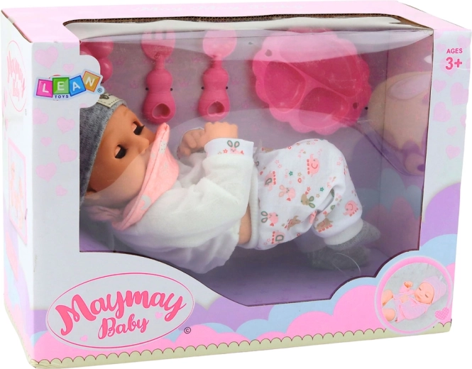 Součástí je sada pro krmení, díky které děti snadno sehrají každodenní scénky: podávání jídla, uklidňování chrastítkem a mazlení. Hra s panenkou podporuje rozvoj sociálních dovedností, empatie a jemné motoriky.