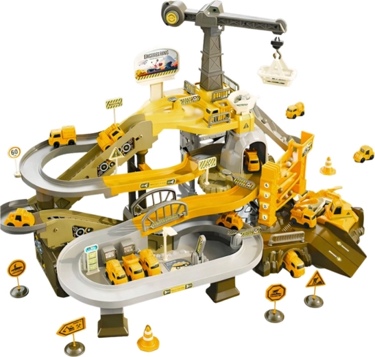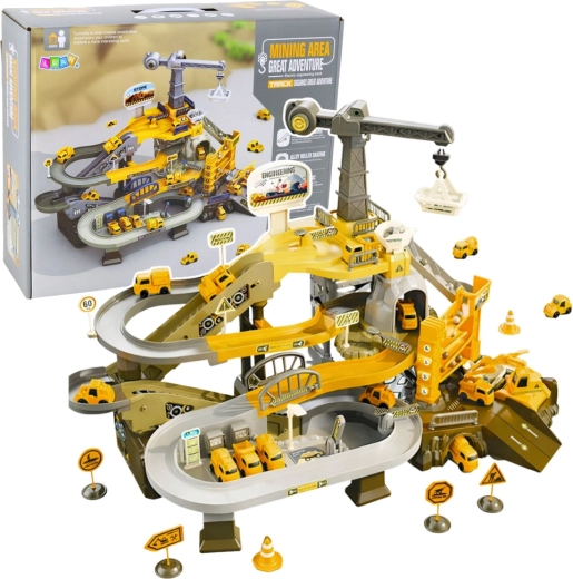 Interaktivní důlní parkoviště je bohatě vybavená hračka pro malé stavitele. Díky automatické elektrické rampě vozidla snadno vystoupají do vyšších pater, zatímco otáčivý jeřáb přemisťuje náklady i kuličky imitující vytěžený materiál. Víceúrovňová trať s zatáčkami, sjezdy a tunely přináší dynamickou hru a realistické scénáře z dolu a stavby.